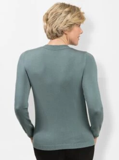 In aktueller 2-in-1-Optik mit besonderer, halsnaher Kragenlösung: angenehm weicher Pullover mit dekorativen Glitzersteinchen am Einsatz mit Rundhals-Ausschnitt und Blenden vorne. Sorgfältig in Form gestrickt. Gerippte Abschlüsse an den langen Ärmeln und am Saum.