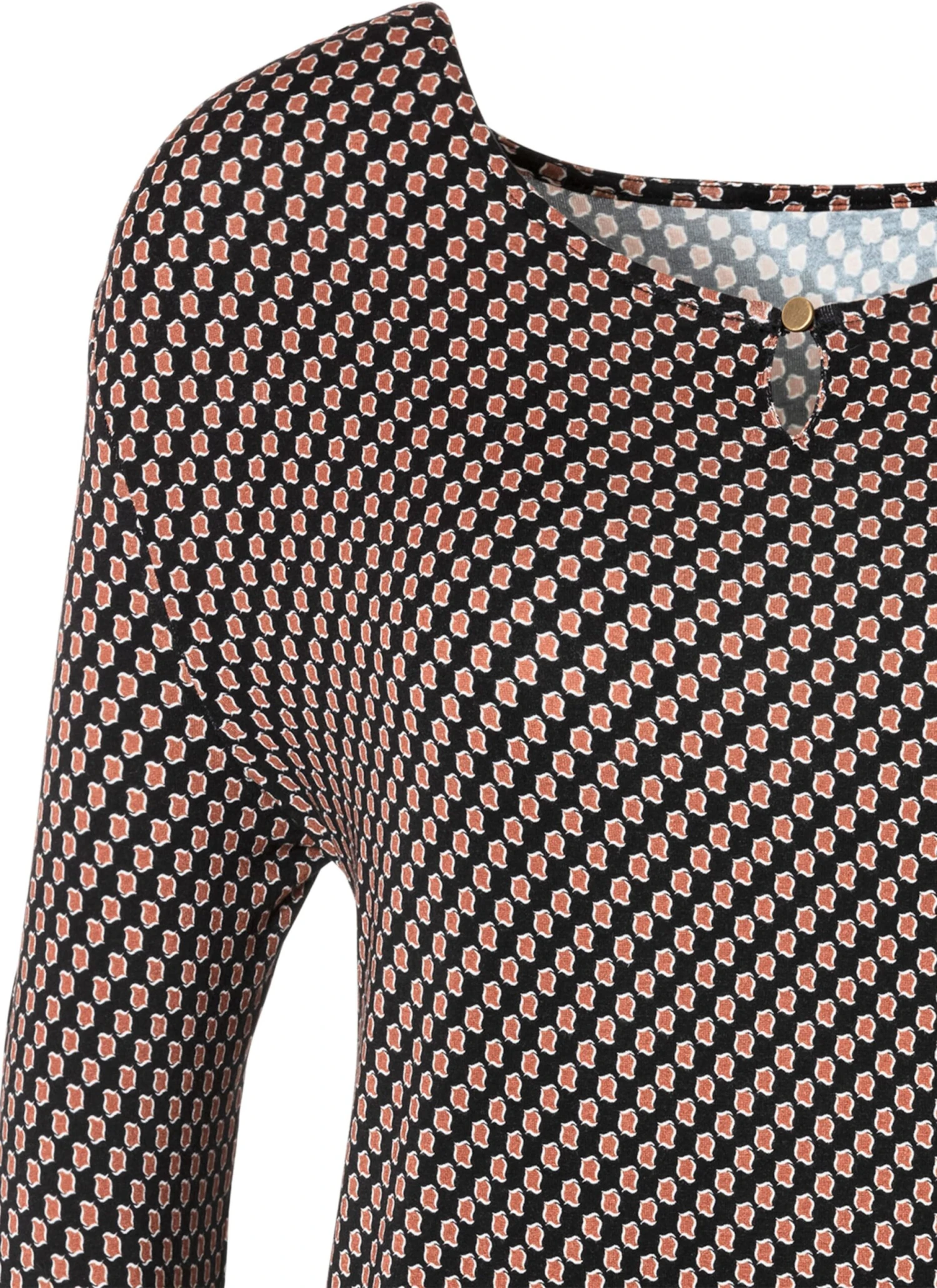 Vivance 3/4-Arm-Shirt. Rundhalsausschnitt mit kleiner Öffnung und goldfarbenen Knopf vorn. Gummizug am Bund für eine lockere Passform. Aus weich fließender Viskose-Elasthan-Qualität.