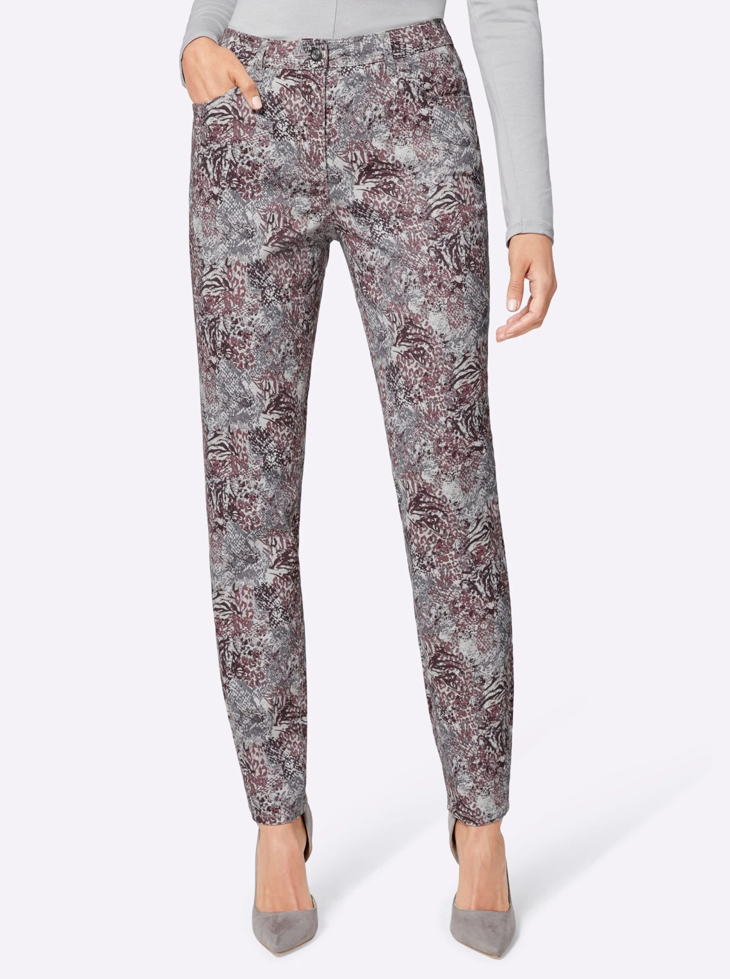 Schlangendrucke flanieren jetzt in neuen Farbkompositionen durch die City! Die Hose in beliebter 5-Pocket-Form wird dadurch zum trendigen Blickfänger. Schmale Form mit Knopf- und Reißverschluss vorne sowie Gürtelschlaufen. Die Passe hinten dient der perfekten Passform. Fußweite ca. 30 cm.
