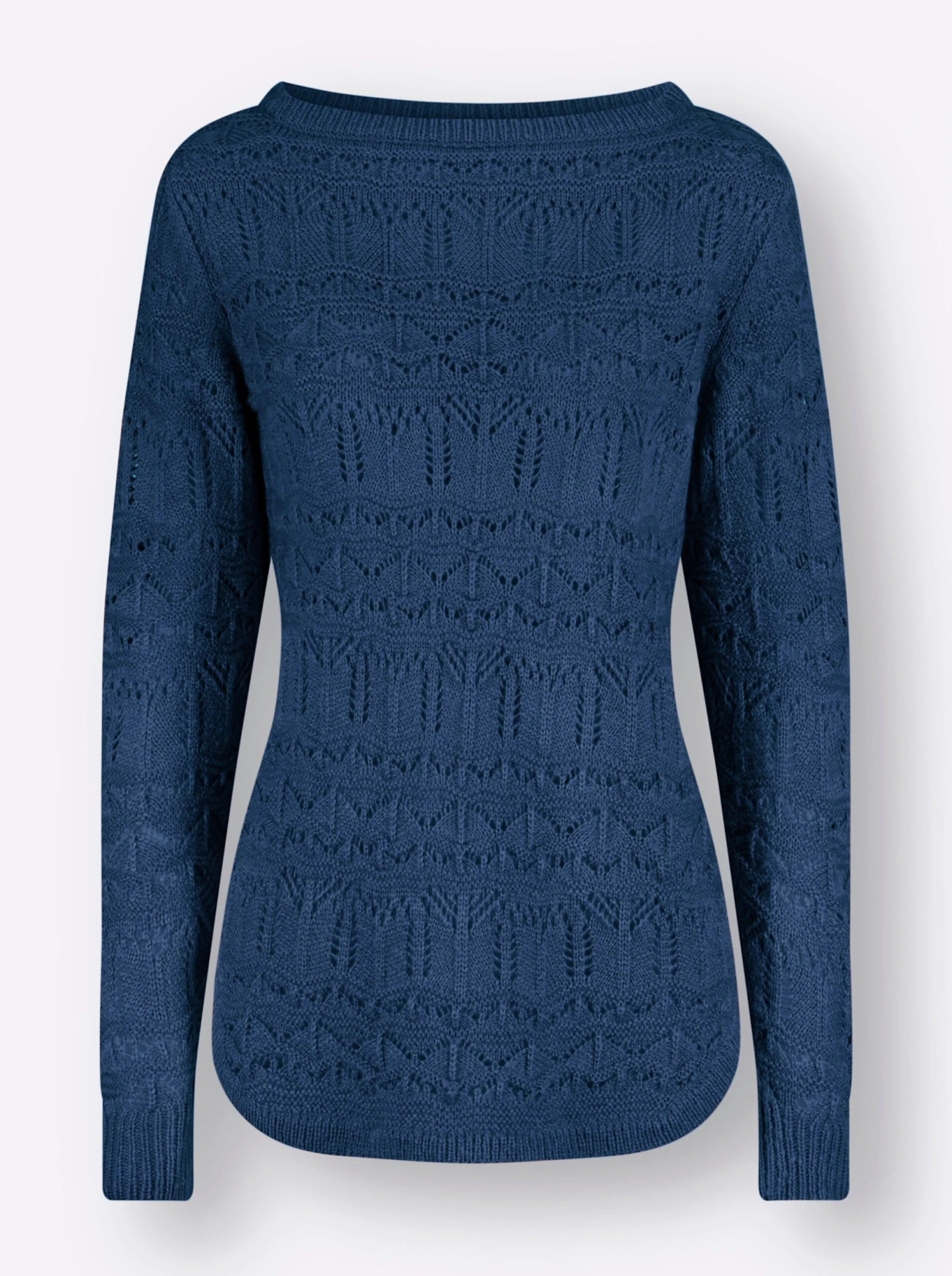 Der Ajour-Pullover gefällt mit dem dekorativen Muster und der weichen, wärmenden Qualität gleichermaßen. Modische Form mit dezentem U-Boot-Ausschnitt sowie gerippten Abschlüssen an den langen Ärmeln und am abgerundeten Saum mit Seitenschlitzen. Passformgerecht gestrickt.