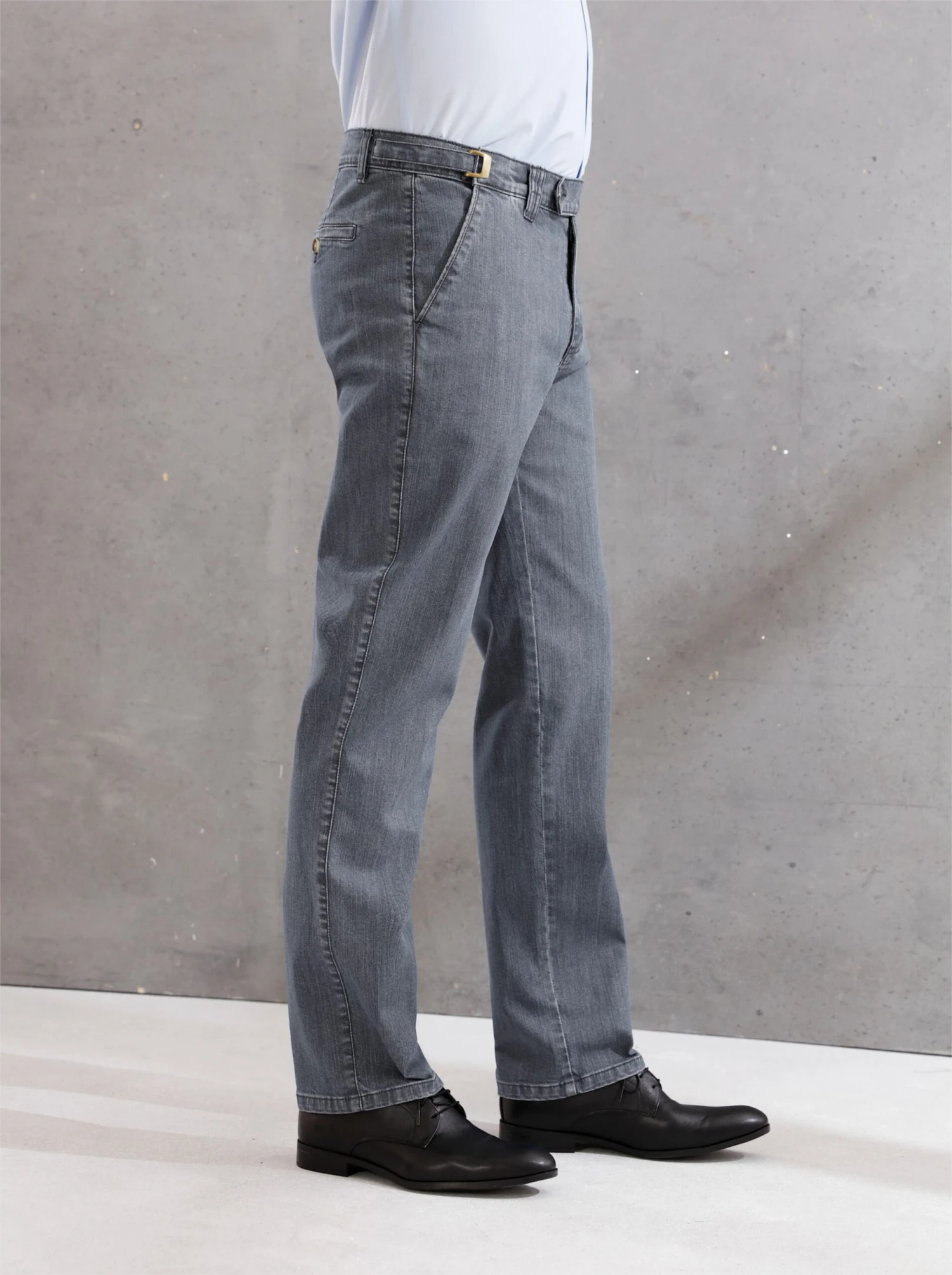 Die Autofahrer-Jeans macht alles mit, was Sie vorhaben! Selbst langes Sitzen fühlt sich mit ihr super bequem an – dem speziellen, verstellbaren Bund mit Clip sei Dank. Mit Knopf- und Reißverschluss, Gürtelschlaufen sowie 2 Taschen vorne und 2 Gesäßtaschen mit Knopf.