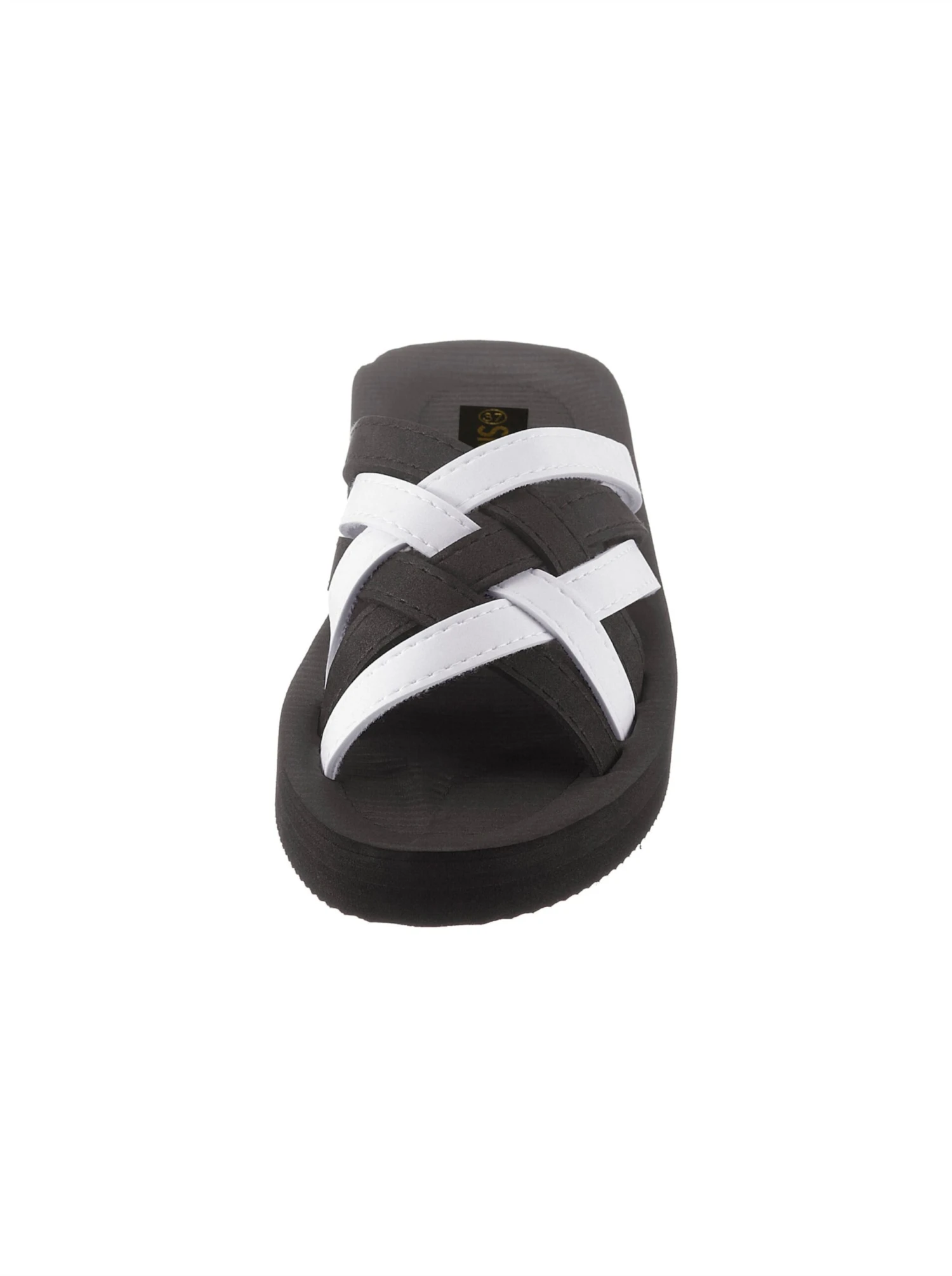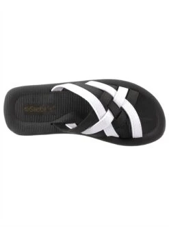 Bade-Pantolette aus leichtem, flexiblem EVA-Material, das sich wunderbar Ihrem Fuß anpasst. Mit Fußbett.