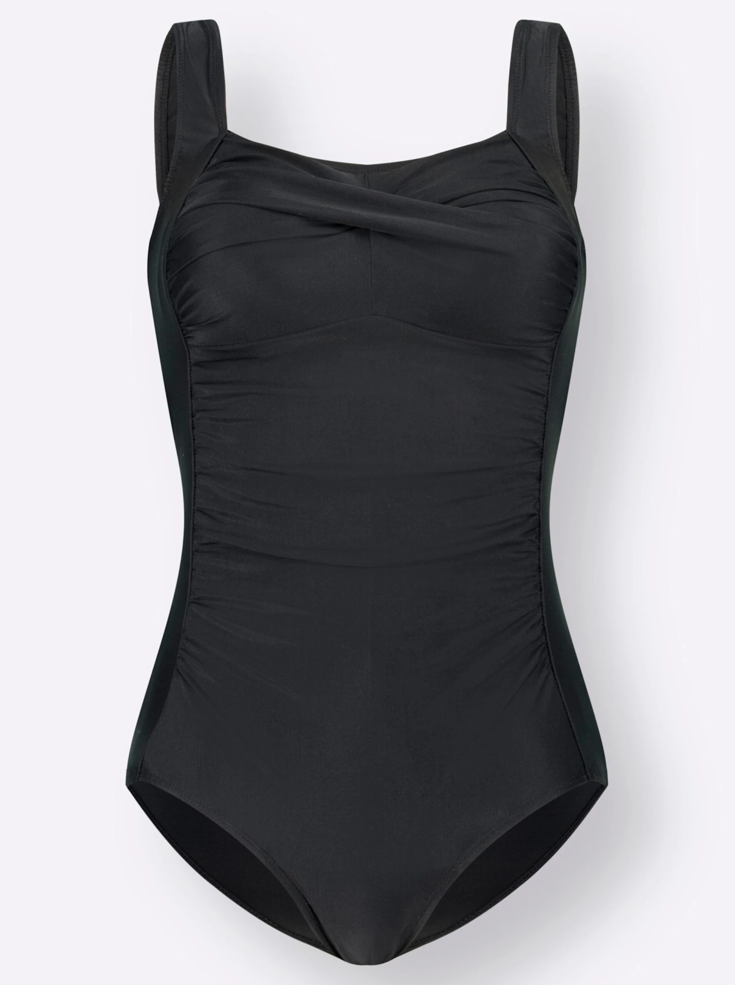 Badeanzug mit schmeichelndem Shaping-Effekt. Dezente Raffungen. Mit Softcups und Vollkorsage. Runder Rückenausschnitt.