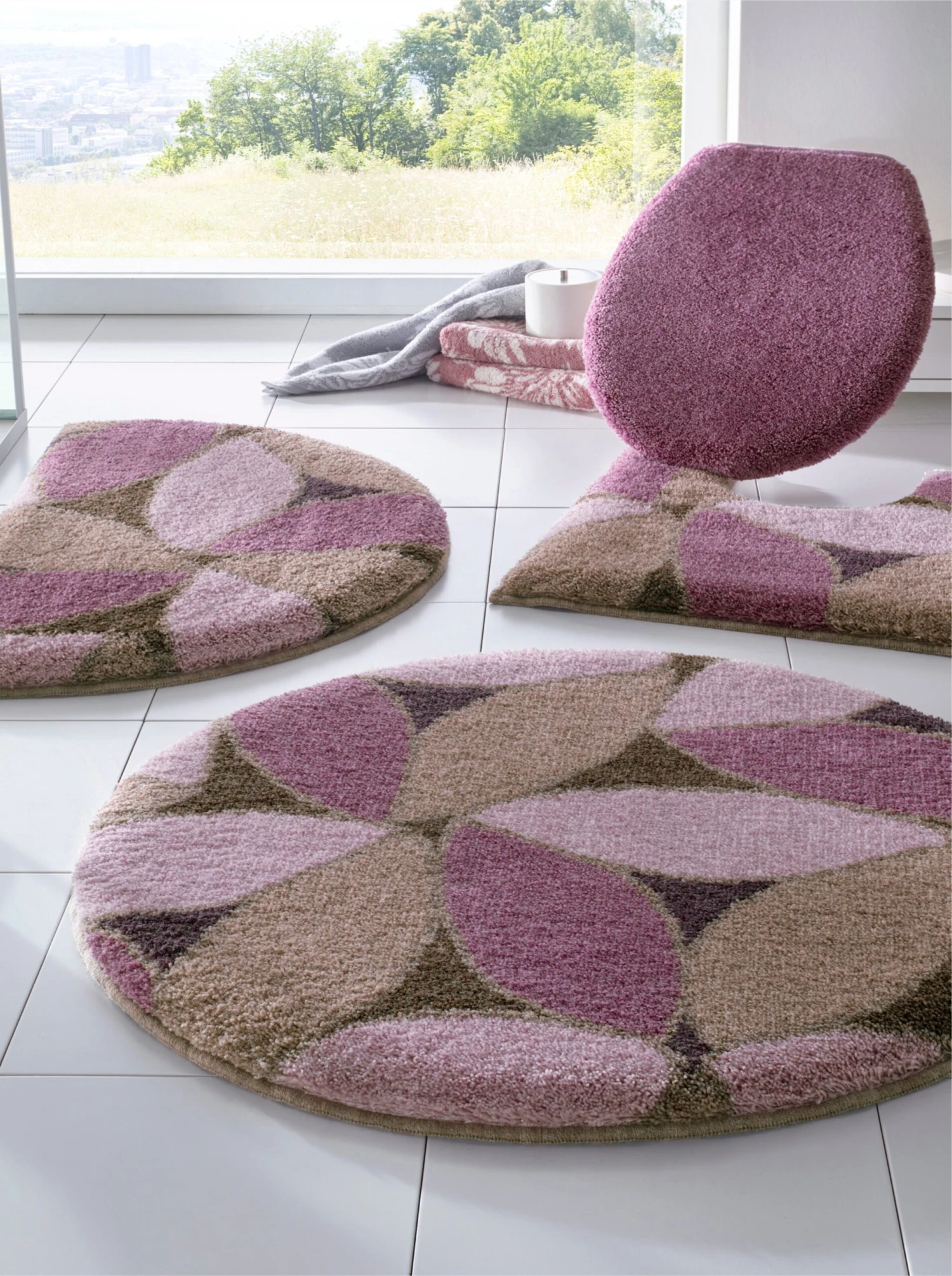 Eine Wohltat für Ihre Füße: elegant dessinierte Badezimmer-Garnitur. Besonders hochwertiger Flor. Ca. 20 mm hoher Flor. Vielfältige Größenwahl. Rutschhemmend latexiert. Für Fußbodenheizung geeignet.
