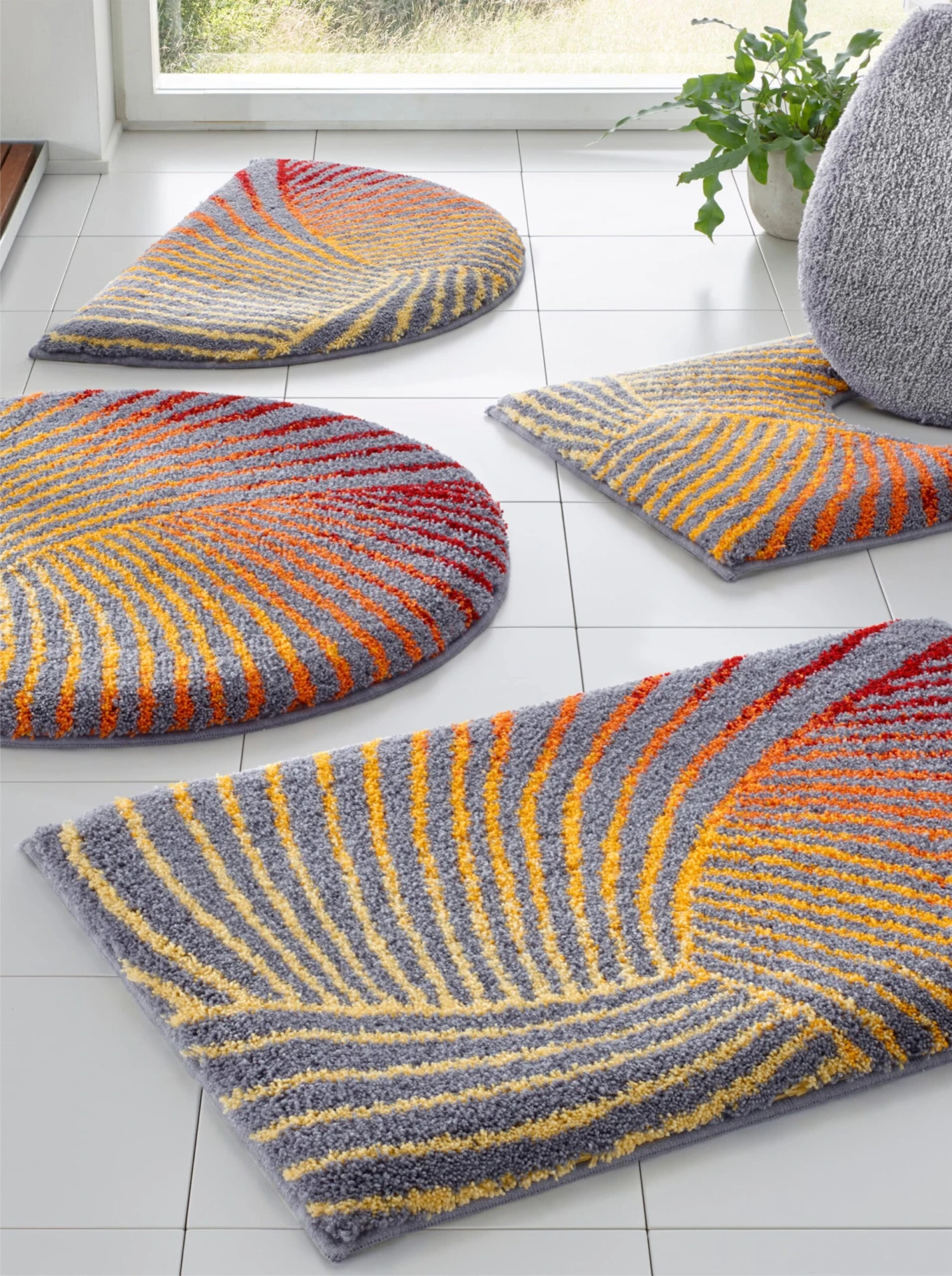 Unsere Verwöhn-Qualität! Die passt sicher auch in Ihr Badezimmer! Badezimmer-Garnitur im aktuellen Farbverlauf. Angenehm weich und flauschig. Florhöhe ca. 18 mm. Rutschhemmend latexiert. Für Fußbodenheizung geeignet.