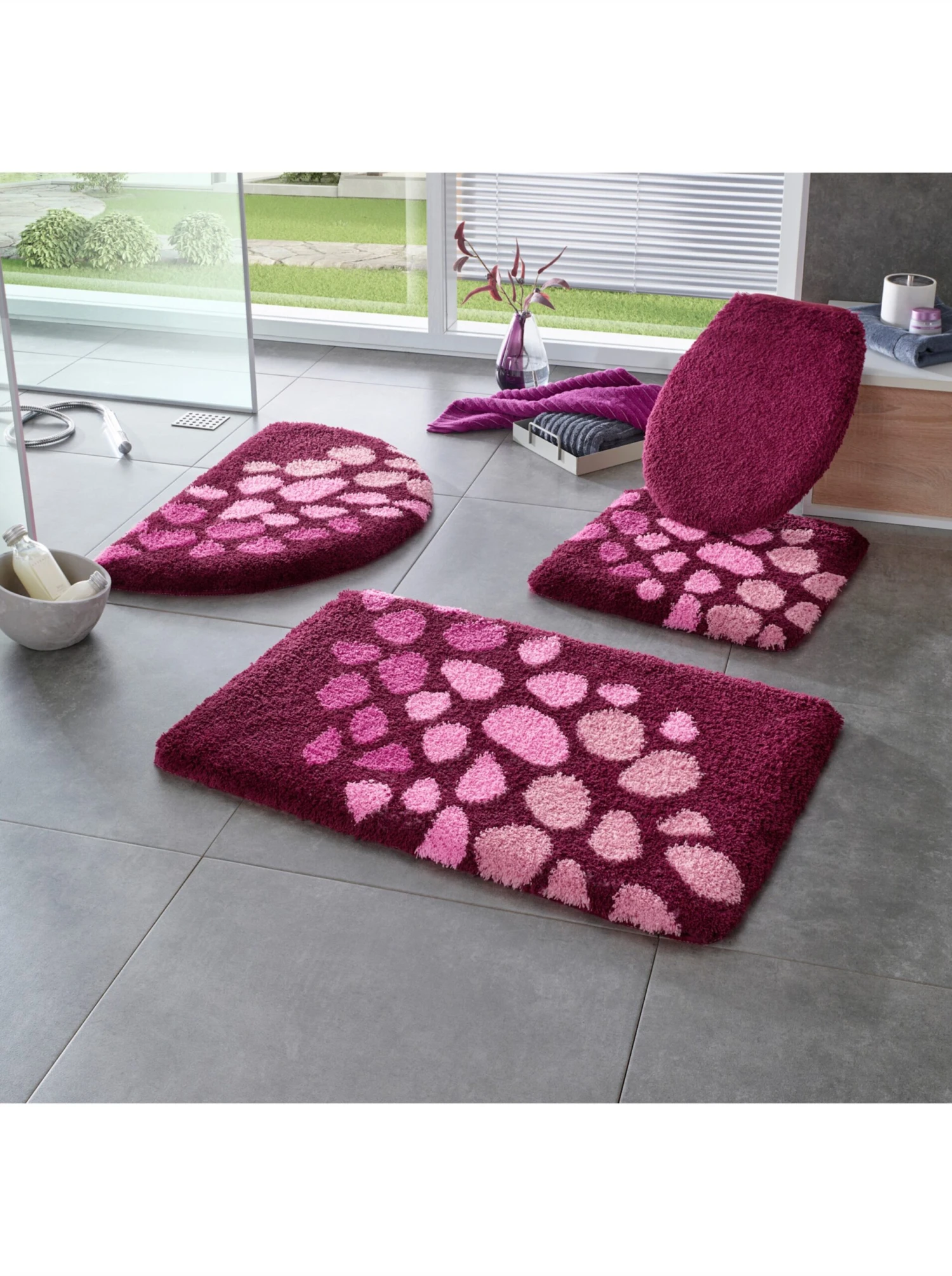 Ein attraktiver Farbverlauf setzt diese Badezimmer-Garnitur geschickt in Szene! Der weiche Flor verwöhnt Ihre Füße auf Schritt und Tritt. Ca. 20 mm hoher Flor. Rutschhemmend latexiert. Für Fußbodenheizung geeignet.