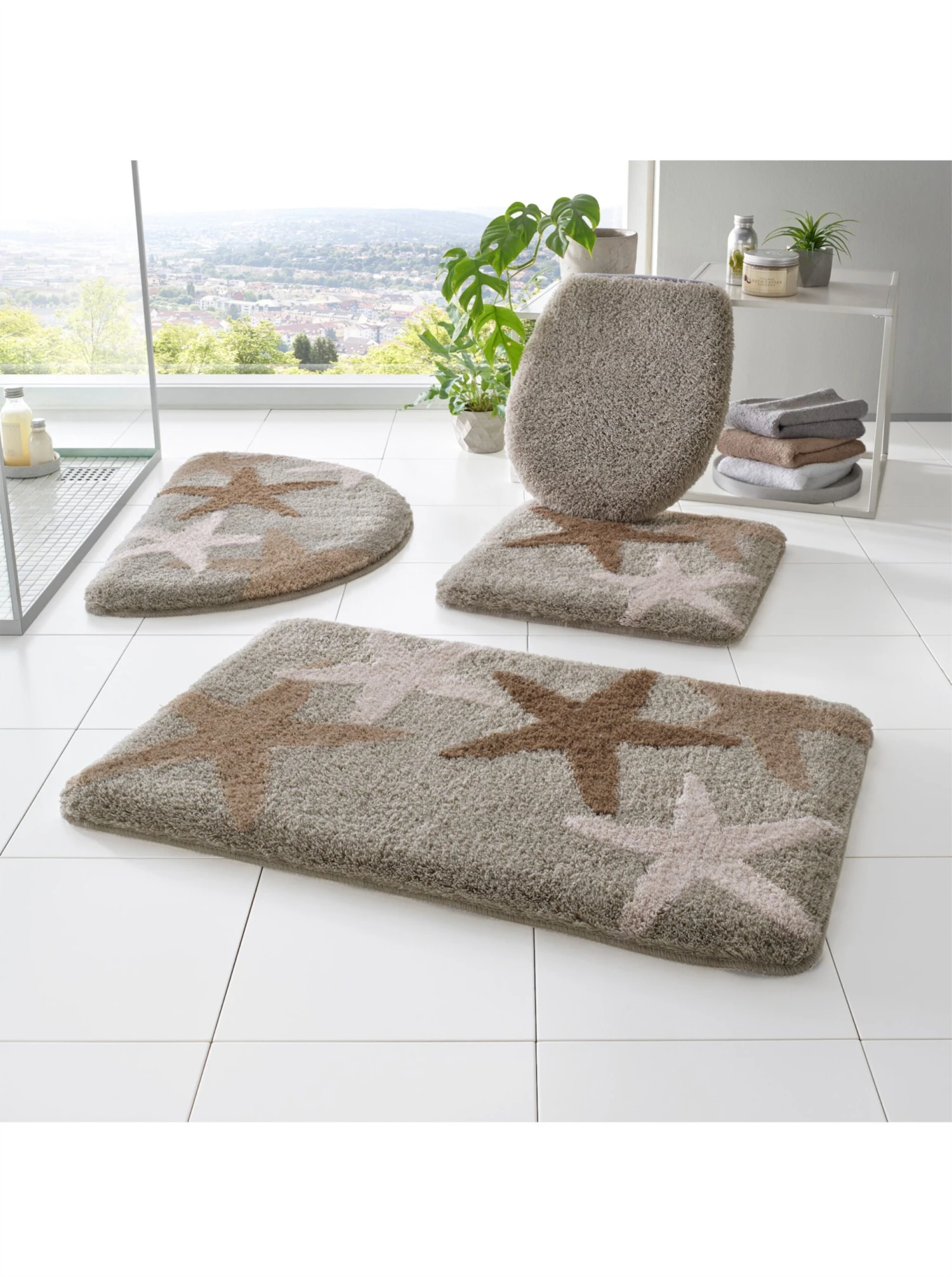 Für ein entspannendes Ambiente: Badezimmer-Garnitur in attraktiver Farbgestaltung. Fühlt sich angenehm weich an: der angenehme Flor. Florhöhe ca. 20 mm. Rutschhemmend latexiert. Für Fußbodenheizung geeignet.