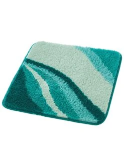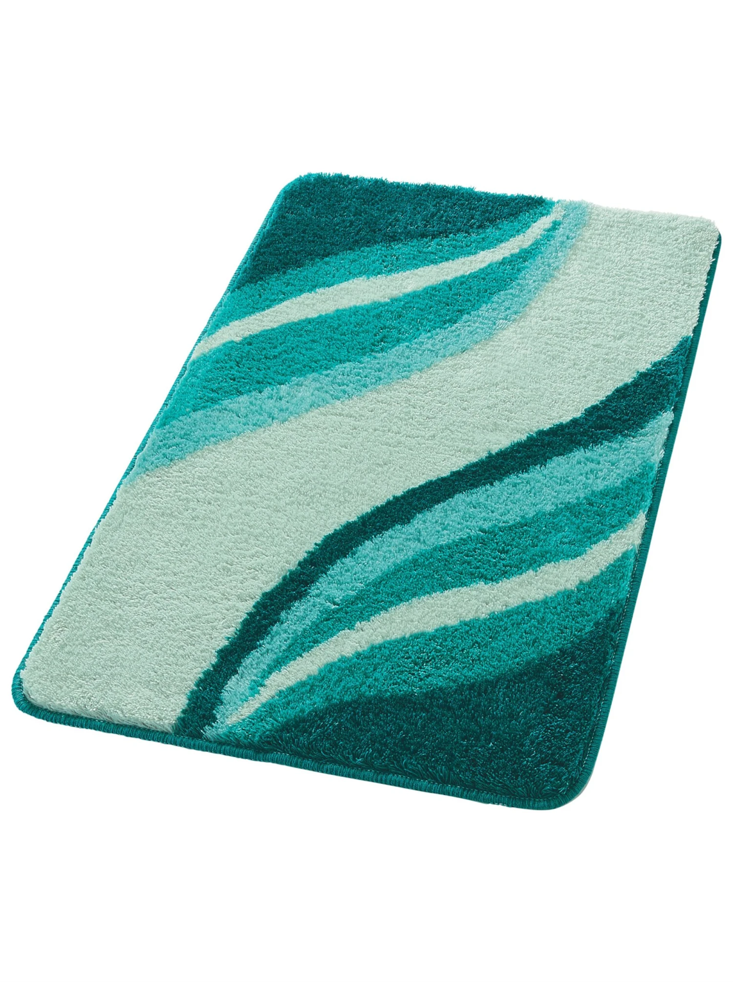Schwung und Eleganz strahlt diese moderne Badezimmer-Garnitur aus! Florhöhe ca. 20 mm. Mit thermofixierten Garnen. Rutschhemmend latexiert.