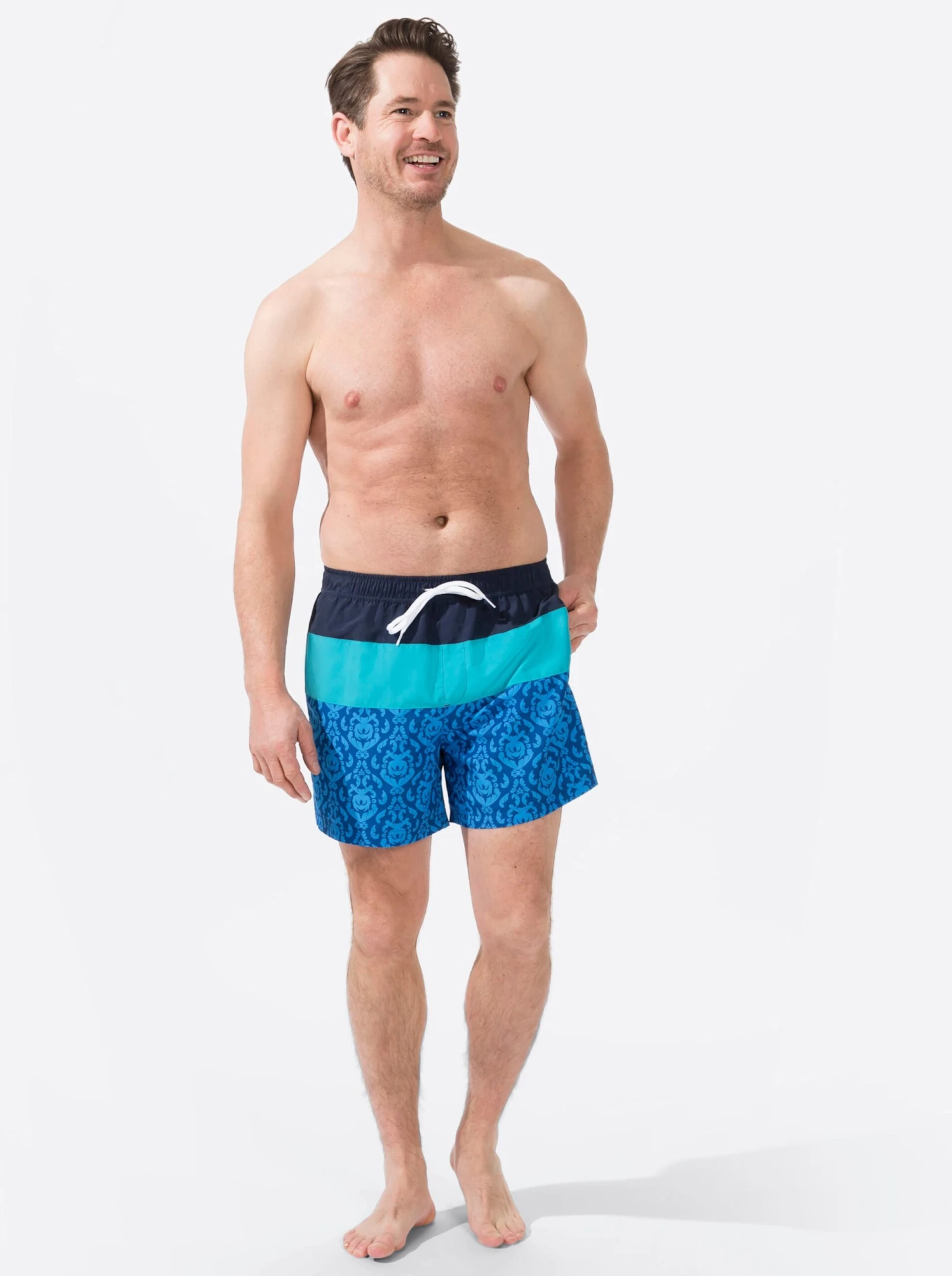 Die wird ihm gefallen: lässige Badeshorts im modischen Dessin. Komfortabler Dehnbund mit Bindeband. 2 seitliche Taschen. Netz-Innenslip.