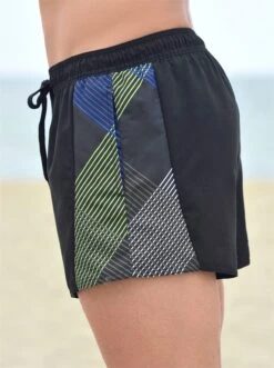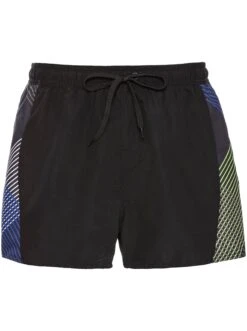 Modische Badeshorts mit kontrastfarbigen, seitlichen Einsätzen. Bindeband im Bund. 2 Taschen seitlich. Innenslip.