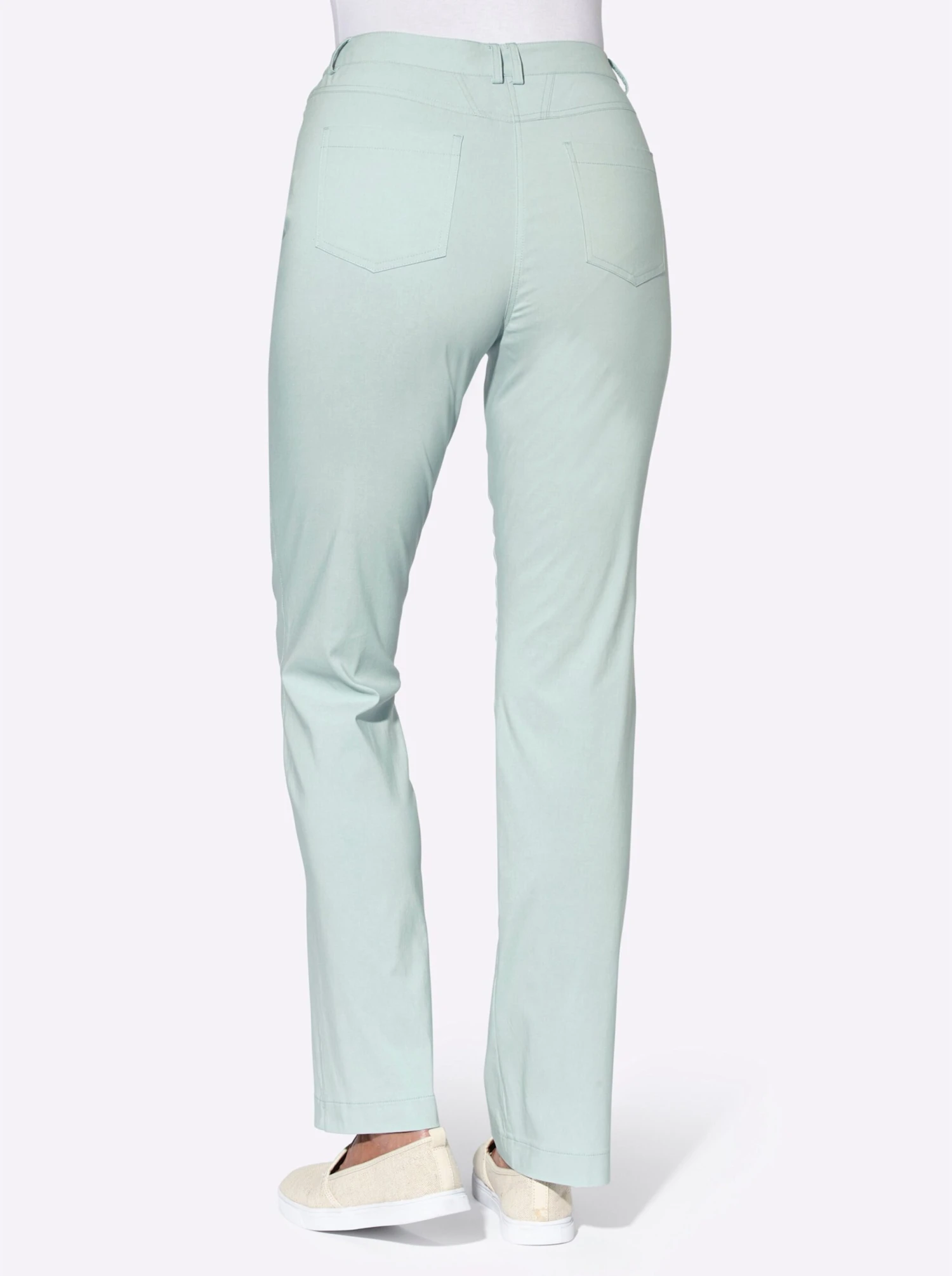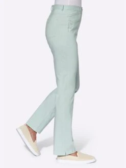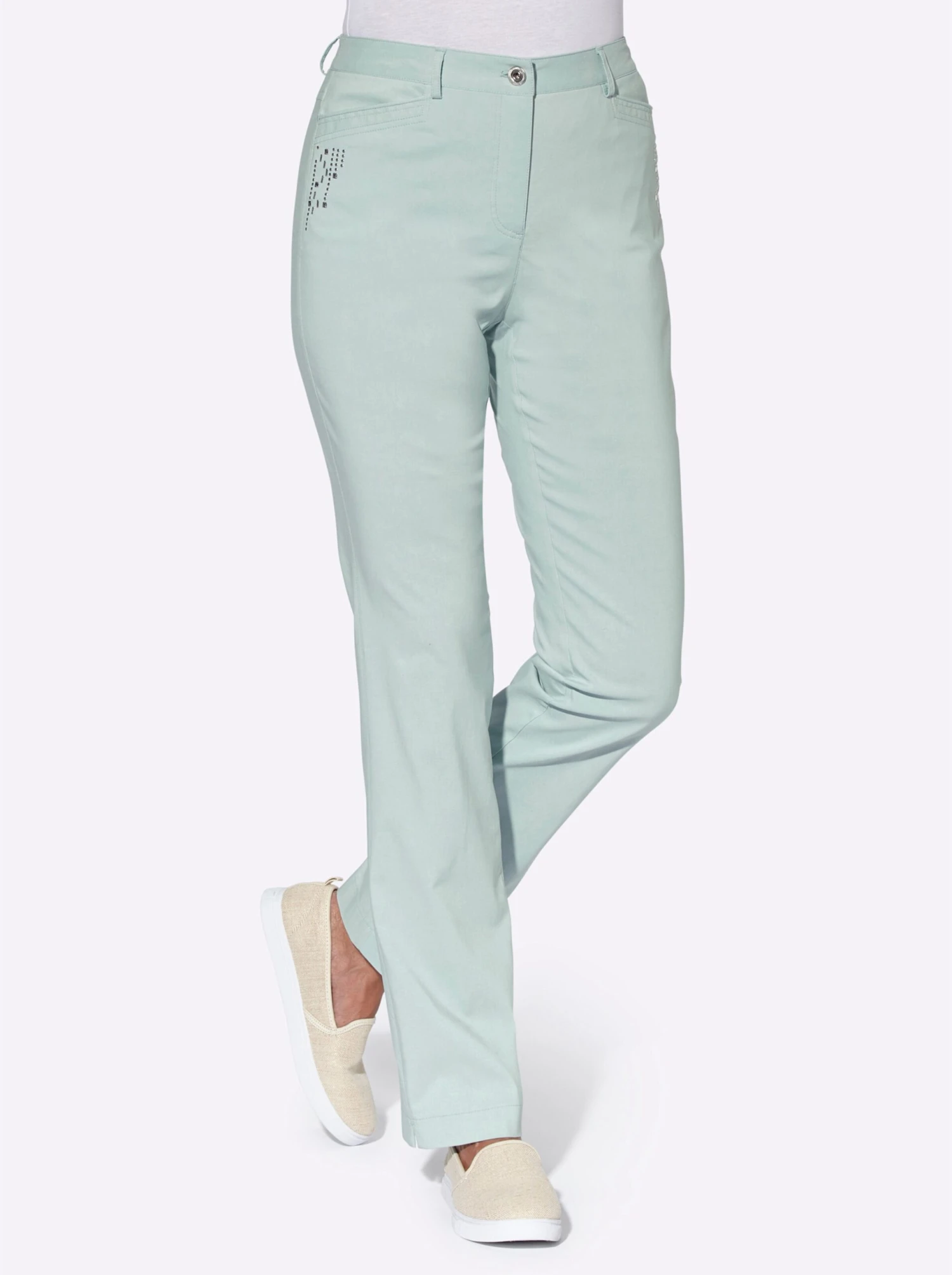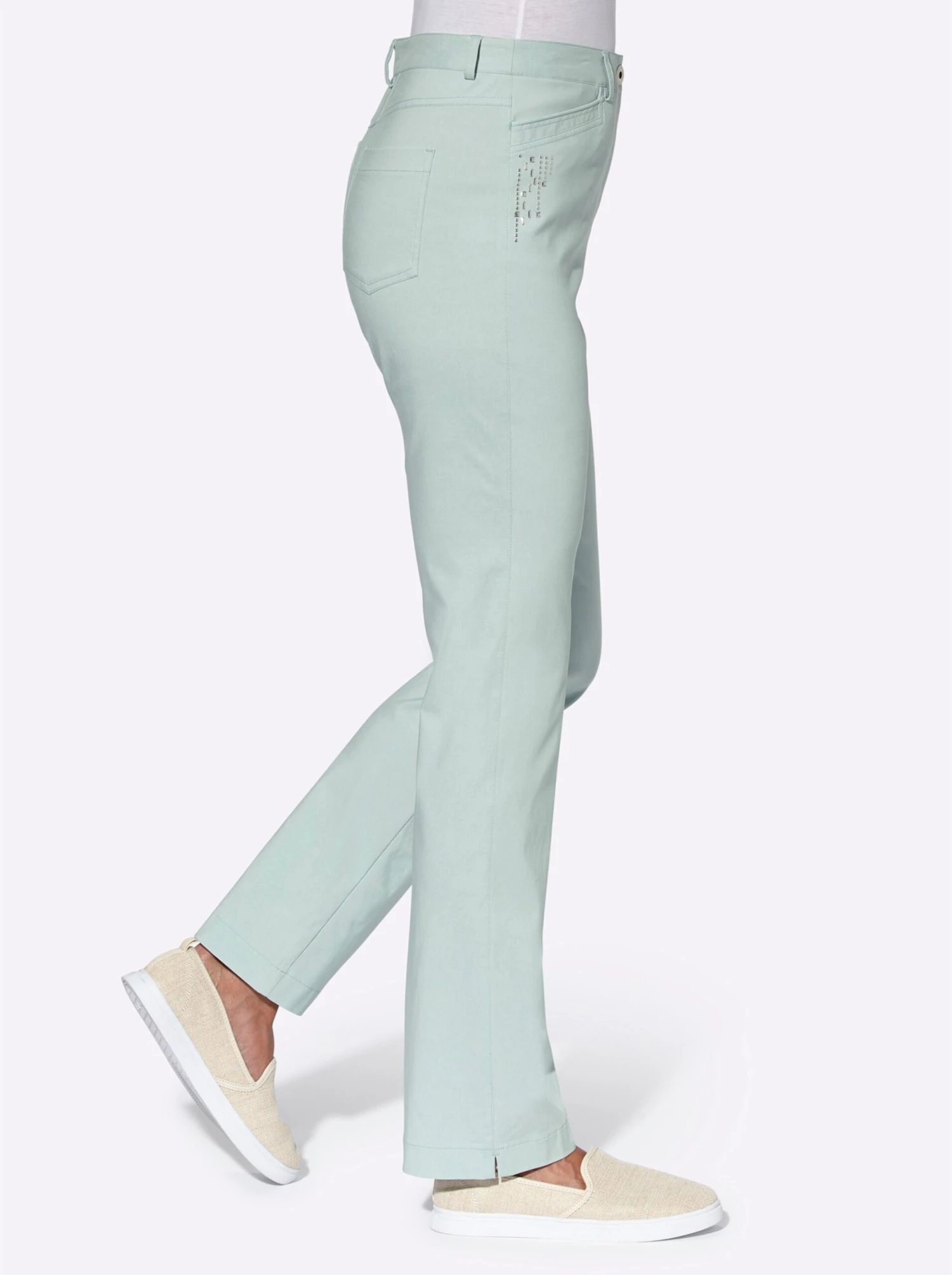 Die sitzt perfekt, ist bequem und bleibt dabei schön in Form! Hose in bewährter Bengalin-Qualität mit vorverlegten Seitennähten, die das Bein schmaler wirken lassen. Formbund, Gürtelschlaufen sowie Knopf- und Reißverschluss. Schmückende silberfarbene Metallsteinchen an den Seiten. Vorne und hinten je 2 Taschen. Die Fußschlitze geben optimale Bewegungsfreiheit. Fußweite ca. 42 cm. Ohne Gürtel.