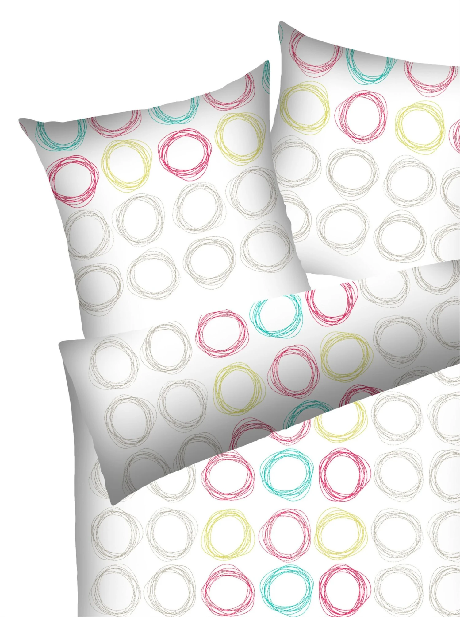 Ein modernes Kreise-Dessin ziert diese aktuelle Bettwäsche. Bügelfreie Qualität. Mit Reißverschluss.