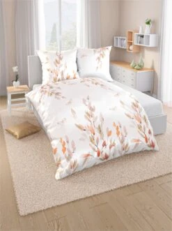 Klassiker im Blättermuster: Bettwäsche aus dem Hause Dormisette. Schnell zu beziehen dank Reißverschluss.