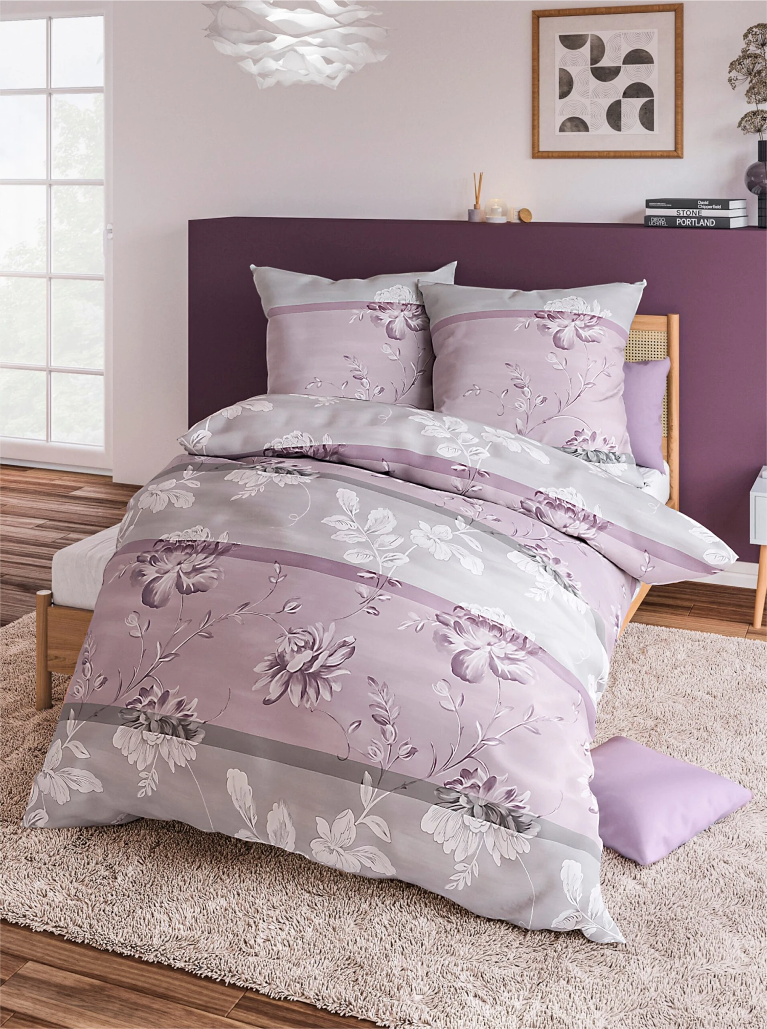 Bettwäsche – Hellgrau-orchidee-gemustert