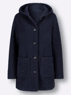 Im Winter jeden Tag gut aussehen? Das war noch nie so leicht wie mit dieser pflegeleichten, wohlig wärmenden Bouclé-Jacke in schmeichelnder Longform und kaschierender, leichter A-Linie. Mit Kapuze, Knopfleiste und aufgesetzten Taschen.