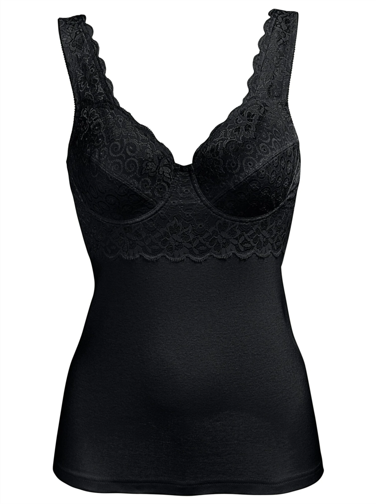 Marken-Qualität von Nina von C: Bügel-BH-Hemd mit unterlegten Untercups. Elastische Spitze vom Ausschnitt bis in die Träger. Träger im Rücken verstellbar. Feinripp.