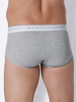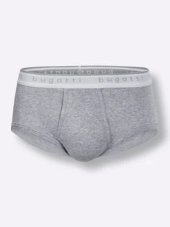 Hoher Slip von Bugatti mit Eingriff. Webgummibund mit Bugatti-Schriftzug. Feinripp.