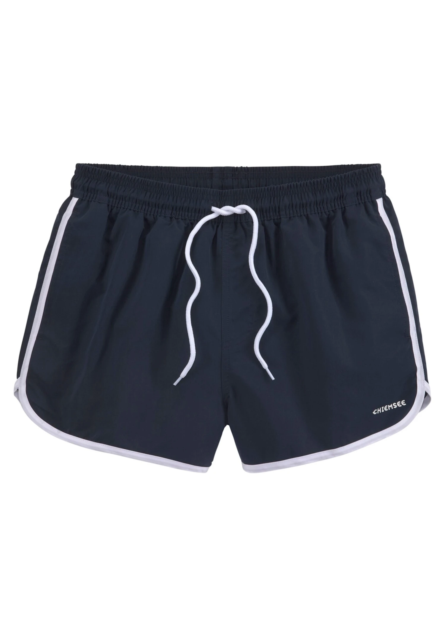 Lässige Badeshorts von Chiemsee. Kontrastfarbene Details. Besonders praktisch: die Gesäßtasche mit Klettverschluss, seitliche Eingrifftaschen und der Innenslip mit kleiner Tasche. Trageangenehme Qualität.