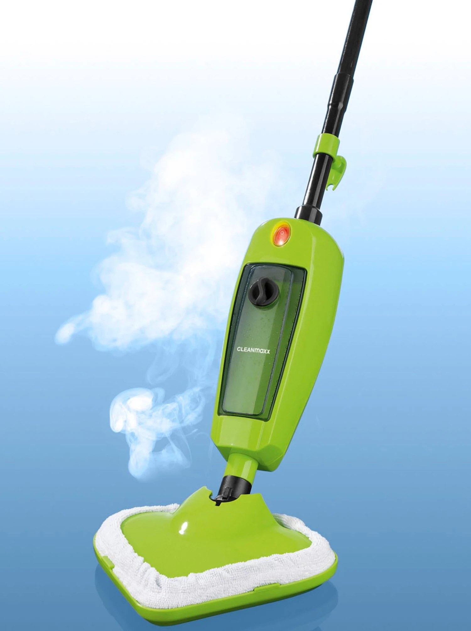 Hygienische Sauberkeit ganz ohne Chemie-Zusatz! Mit dem Dampfbesen von cleanmaxx wird das Wischen zum Kinderspiel. Keine lange Vorbereitung dank der kurzen Aufheizphase und einer Dampfzeit von bis zu 15 Minuten. Durch die innovative Technik wird die Feuchtigkeitsabgabe reguliert – so ist der Dampfbesen für nahezu alle glatten Böden geeignet und sorgt für strahlende Sauberkeit. Inklusive Mikrofasertuch, Messbecher und Teppichgleiter. Kapazität Wassertank ca. 250 ml. Gewicht ca. 1,5 kg. Kabellänge ca. 3,5 m. Max. 1000 Watt.
