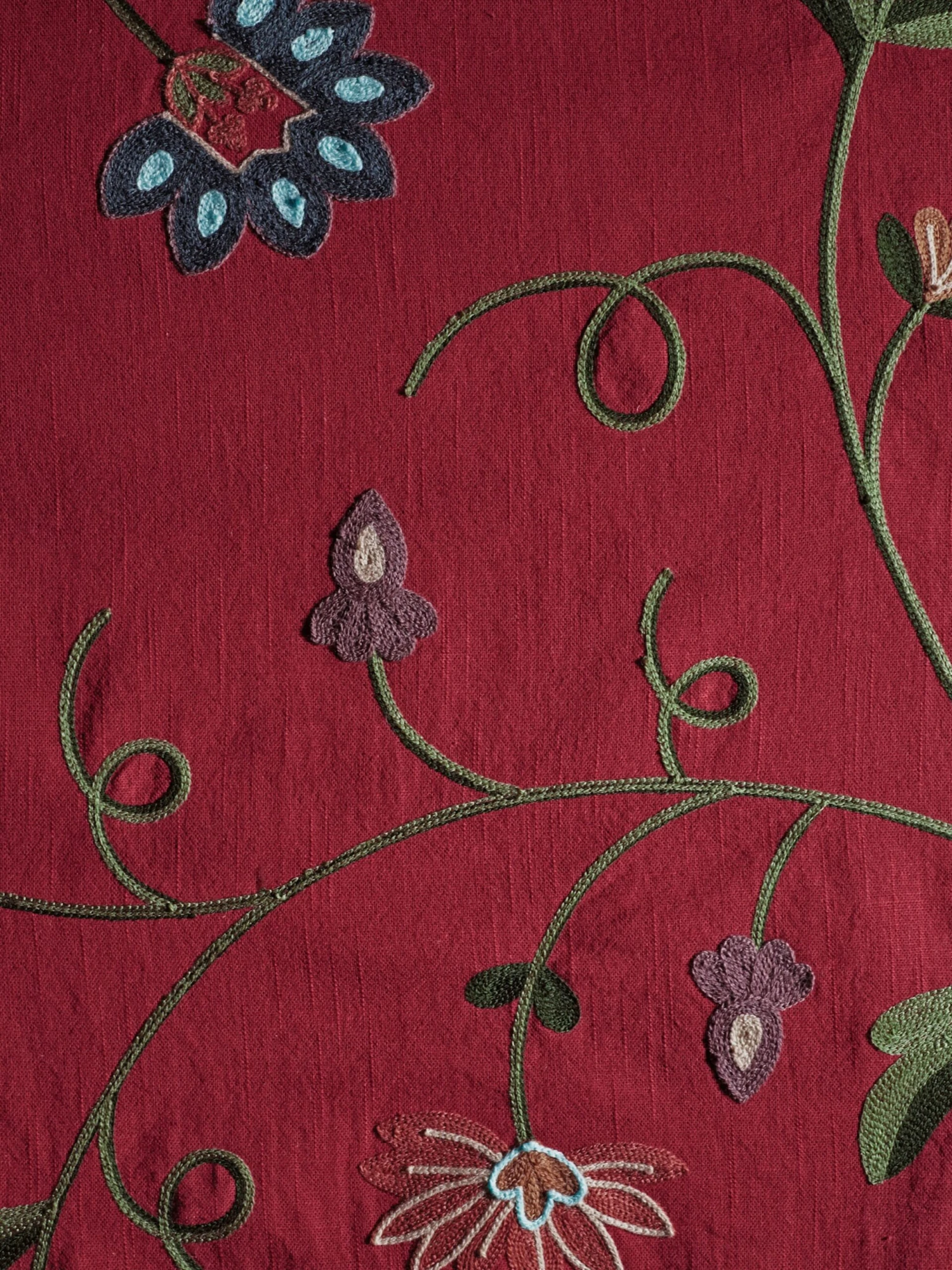 Dekoschal Echte Handwerkskunst. Mit Crewel-Stickerei. Blickdicht. Maße = Stoffmaße (ca. Höhe x Breite).