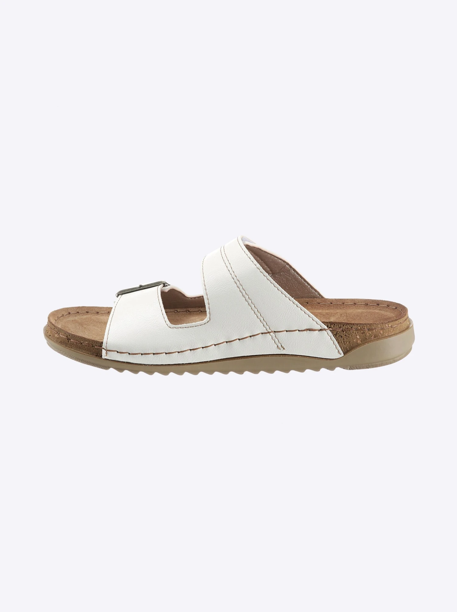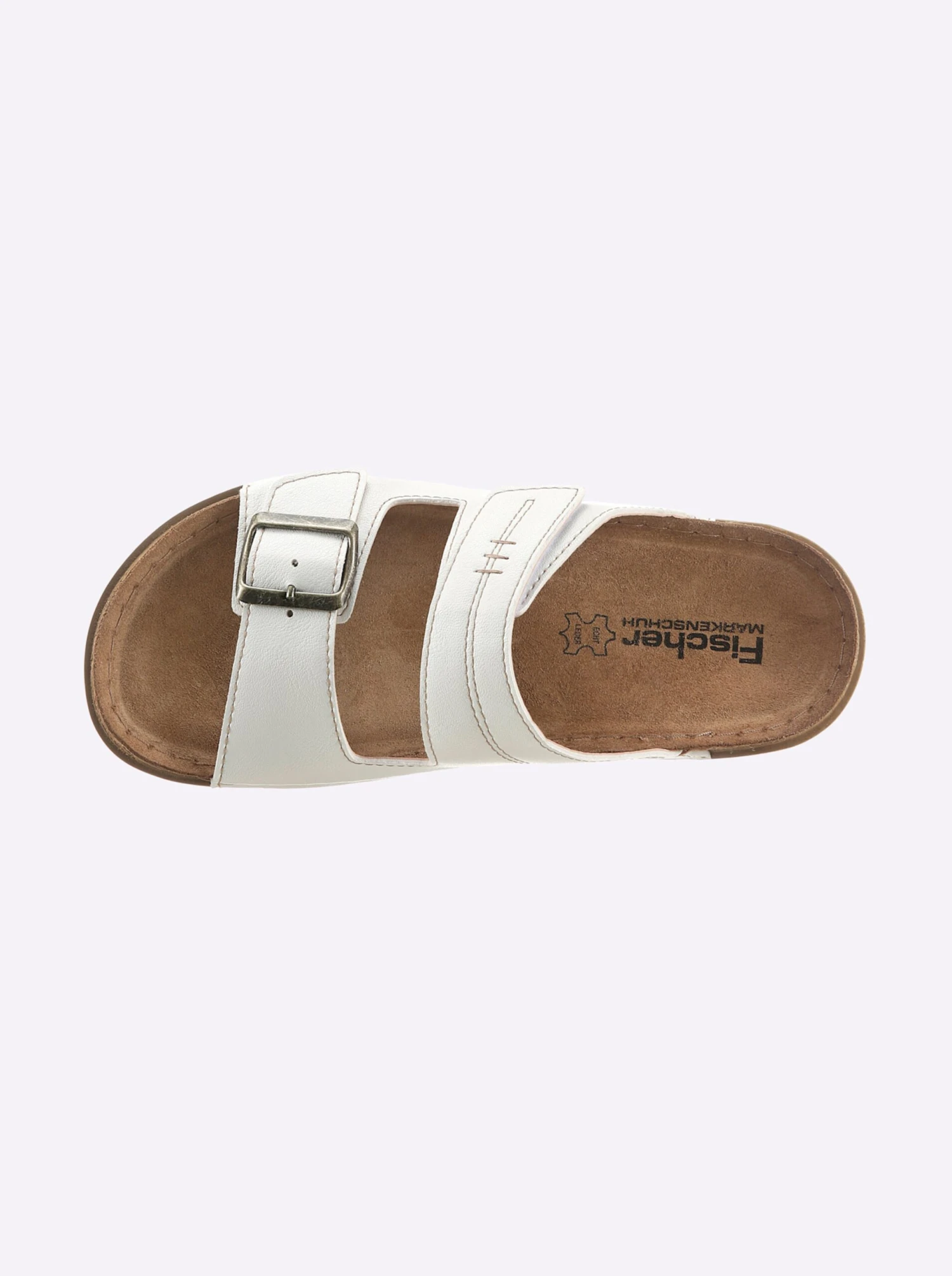 Für einen sicheren und bequemen Auftritt zu Hause: Pantolette von Fischer aus Lederimitat. Dekorative Zierschließe. Mit Klettverschluss. Federleicht. Innen aus Lederimitat und Leder. Laufsohle aus PU. Flexibel. Höhe des Absatzes ca. 25 mm. Weite G.