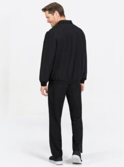 Super Sitz! Freizeitanzug von Catamaran Sports in atmungsaktiver Microfaser mit elastischen Bündchen an den langen Ärmeln und am Saum. Jacke mit Kontrasten an der Schulter und vorne als sportiver Druck. Mit Stehkragen, durchgehendem Reißverschluss und 2 seitlichen Reißverschluss-Taschen. Bequeme Dehnbund-Hose mit Bindeband innen und 2 seitlichen Taschen.
