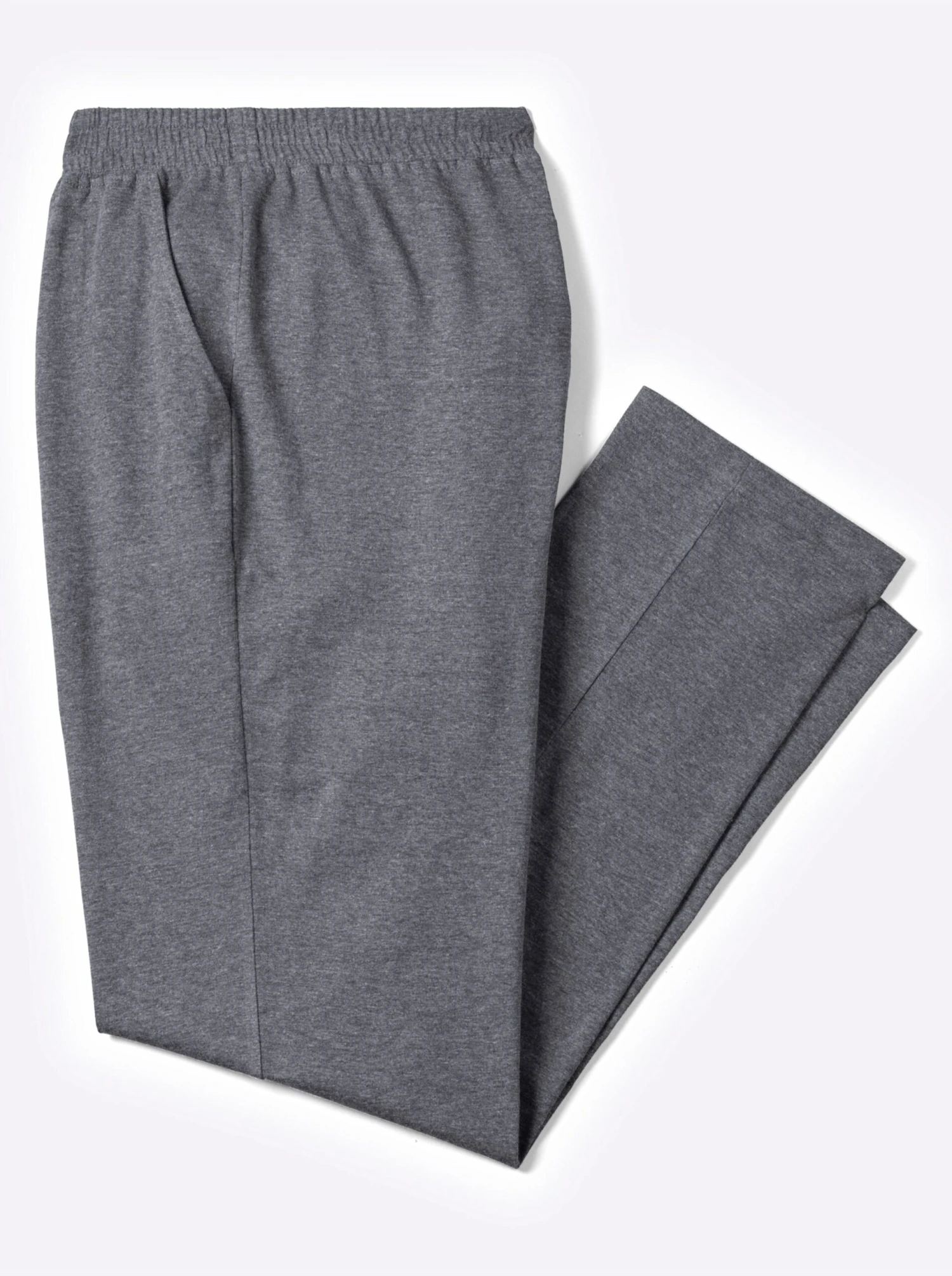 Besonders bequeme Freizeithose. Mit Rundum-Dehnbund und 2 seitlichen Taschen. 100% Baumwolle. Anthrazit-meliert: 65% Baumwolle, 35% Polyester. Maschinenwäsche.