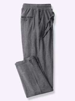 Gepflegte Freizeithose in hochwertige Pikee-Qualität mit Knopf- und Reißverschluss vorne sowie komfortablem, geripptem Dehnbund mit Tunnelzug und Bindeband außen. 2 seitliche Taschen, 1 knöpfbare Gesäßtasche.