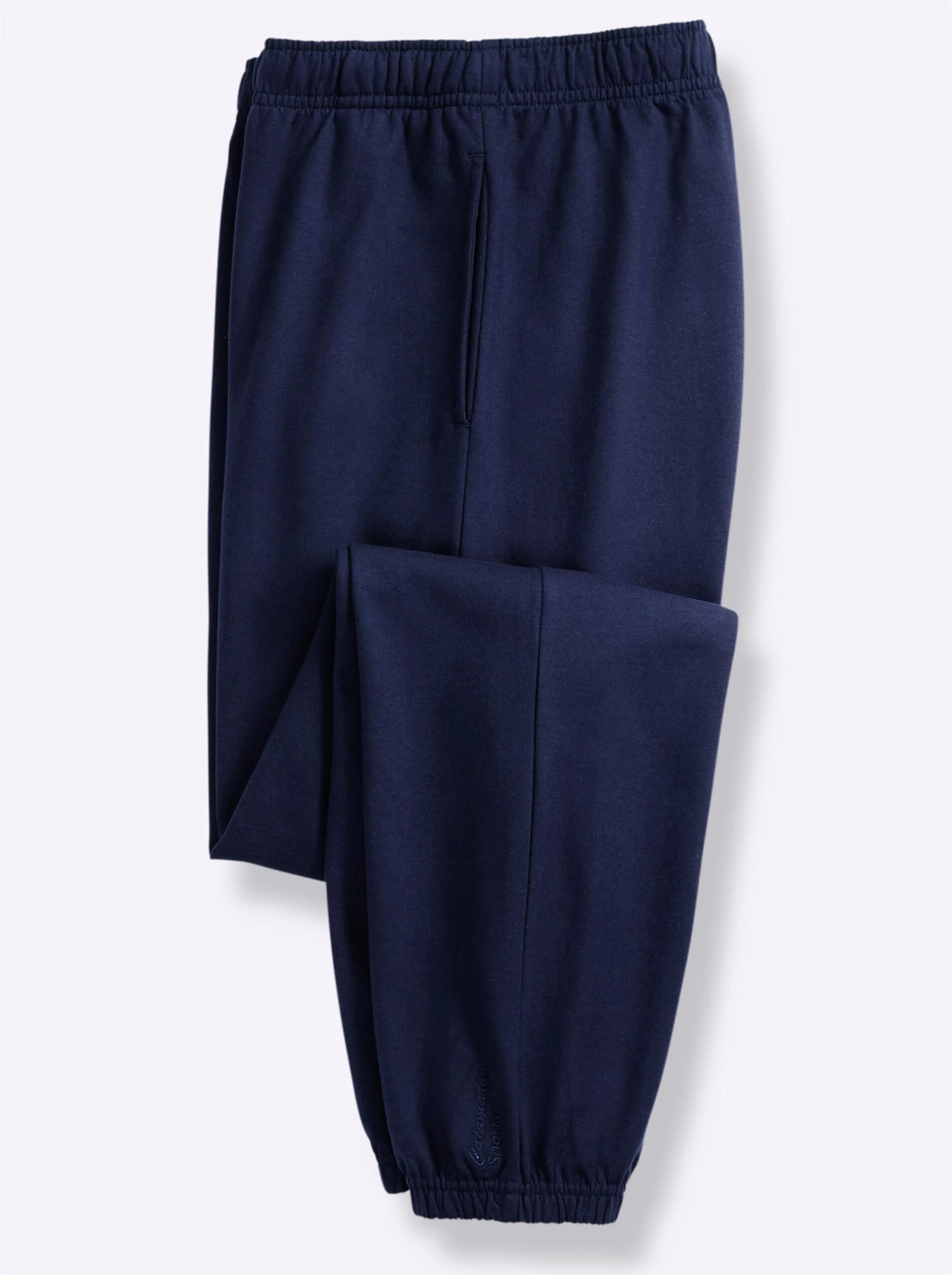Freizeithose mit elastischen Bündchen am Saum – der Klassiker unter den Jogginghosen. Bequem durch den Rundum-Dehnbund mit Tunnelzug und Bindeband innen. 2 seitliche Taschen. Angenehmes Tragegefühl, da innen wärmend angeraut. Mit Logo-Stickerei. Unterstützt die Initiative Cotton made in Africa.