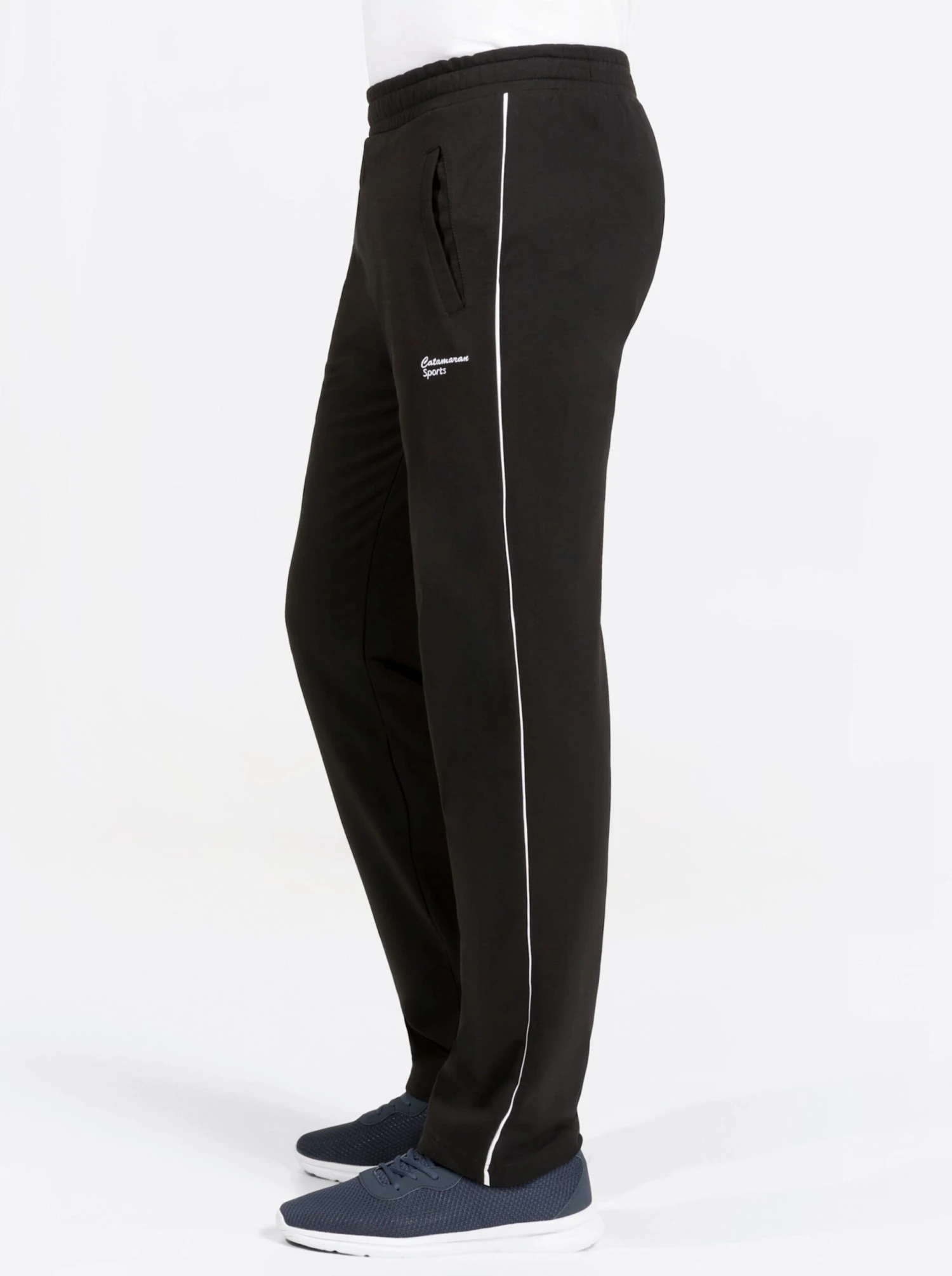 Lange Freizeithose von Catamaran Sports mit Rundum-Dehnbund, Bindeband innen und 2 seitlichen Taschen. Der Clou sind die Kontrastpaspeln beidseitig entlang der Seitennaht. Mit dem Kauf unterstützen Sie die Initiative Cotton made in Africa.