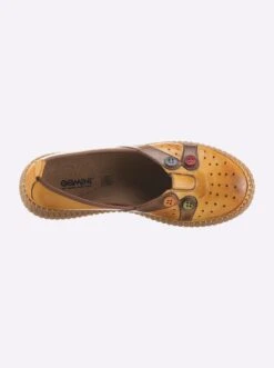 Der Slipper von Gemini bringt mit seinem Lochmuster und den mehrfarbigen Details Pep ins Spiel. Obermaterial aus Glattleder, innen aus Leder und Microfaser. Weich gepolstert. Mit Wechselfußbett. Rutschhemmende, flexible Gummi-Laufsohle mit ca. 30 mm Absatz. Weite G.