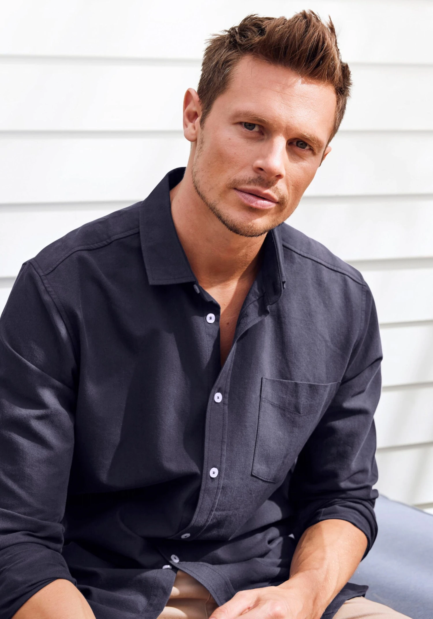 Lässiges Oxford Hemd mit langen Ärmeln von H.I.S. Klassischer Hemdkragen. Vorn mit Brusttasche, hinten mit Passe. Aus trageangenehmer Baumwolle .