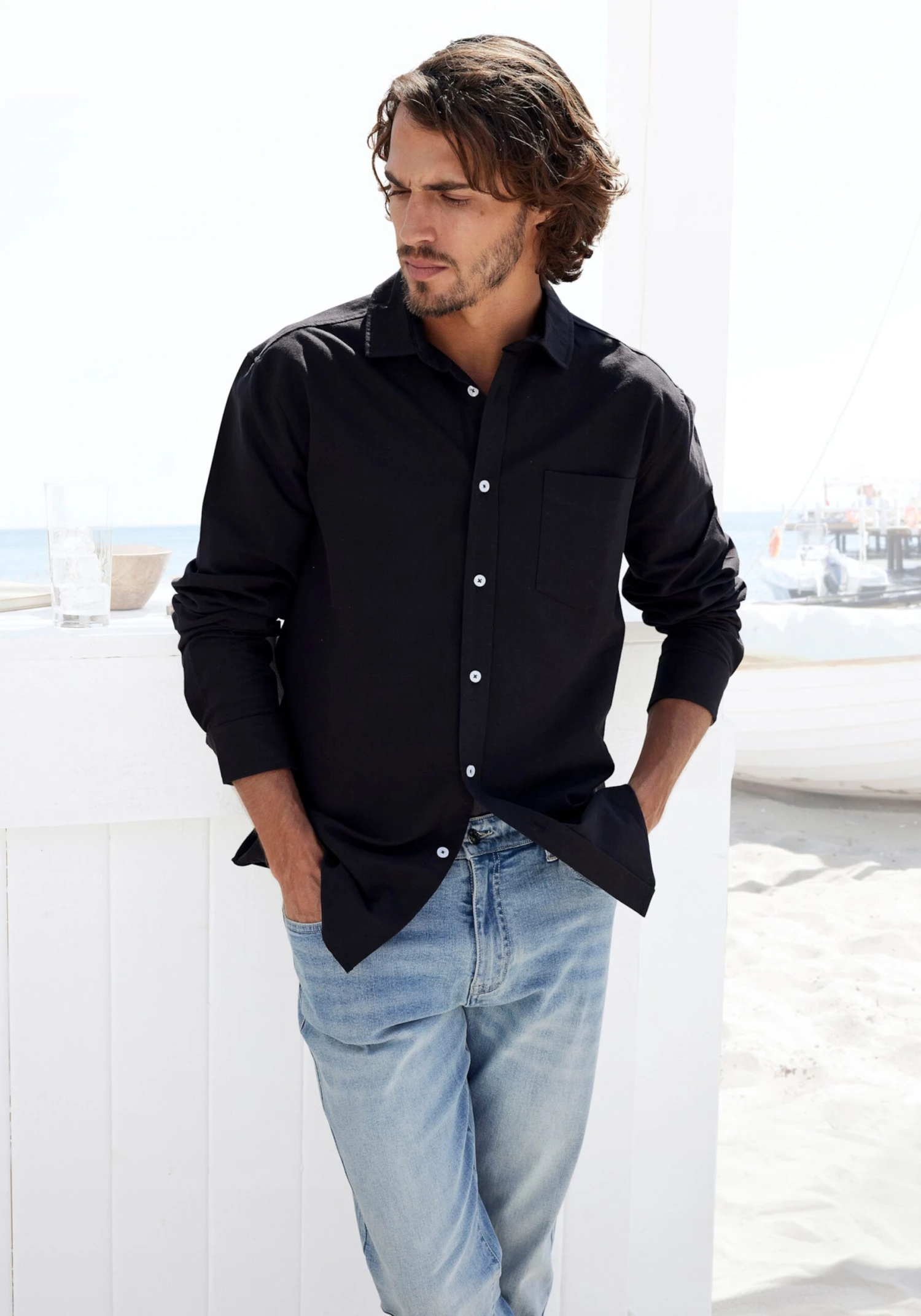 Lässiges Oxford Hemd mit langen Ärmeln von H.I.S. Klassischer Hemdkragen. Vorn mit Brusttasche, hinten mit Passe. Aus trageangenehmer Baumwolle .
