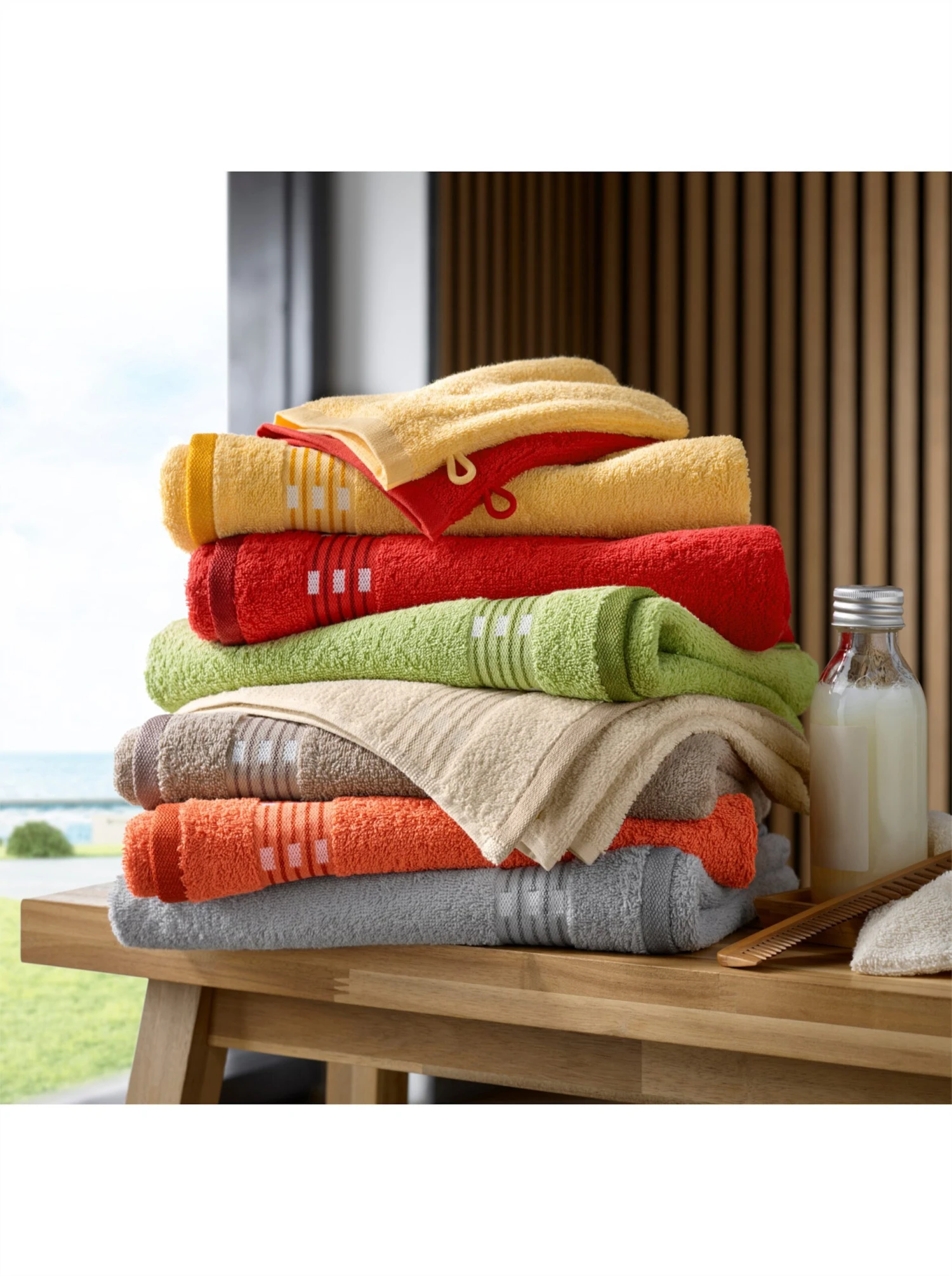 Welche Farbe ist Ihr Favorit? Das Frottierprogramm in schlichten Unitönen ist auch in vielen Größen erhältlich! Hübsche Webbordüre.