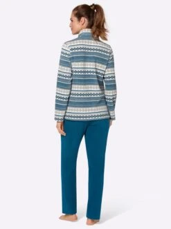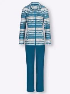 Aus flauschigem Fleece: Pflegeleichter Hausanzug im aktuellen Muster-Mix. Mit Stehkragen, durchgehendem Reißverschluss und 2 Reißverschluss-Taschen. Hose mit elastischem Dehnbund und Tunnelzug.