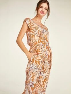 Overall Gerade Beinform. Aus fein fließendem Material. Trendstarker Print. Mit Bindegürtel. Gummizug in der Taille.