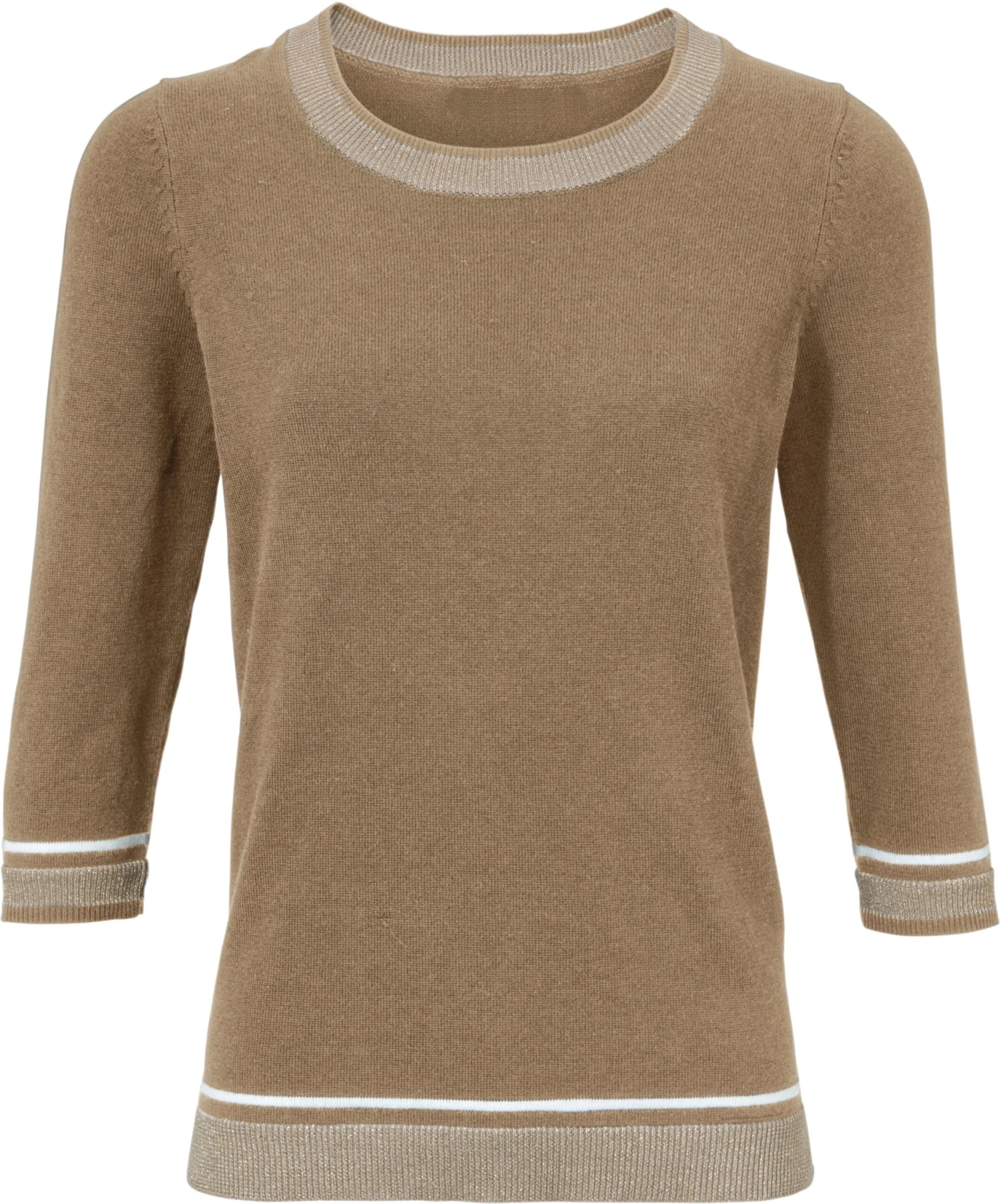 Rundhals-Pullover Mit effektvollem Glanzgarn. Angenehm weicher Feinstrick. Figurbetonte Form. Mit Rundhalsausschnitt. Mit 3/4-Ärmeln.