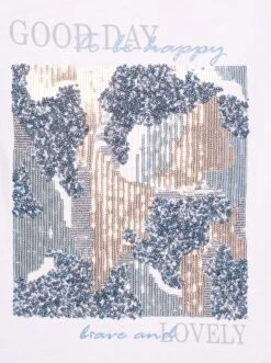Shirt Toller Blickfang – einzeln getragen oder kombiniert. Mit silberfarbenem Glanzgarn. Schimmernde Pailletten und modischer Schriftzug im Vorderteil. Rundhalsausschnitt und 3/4-Ärmel mit Umschlag.