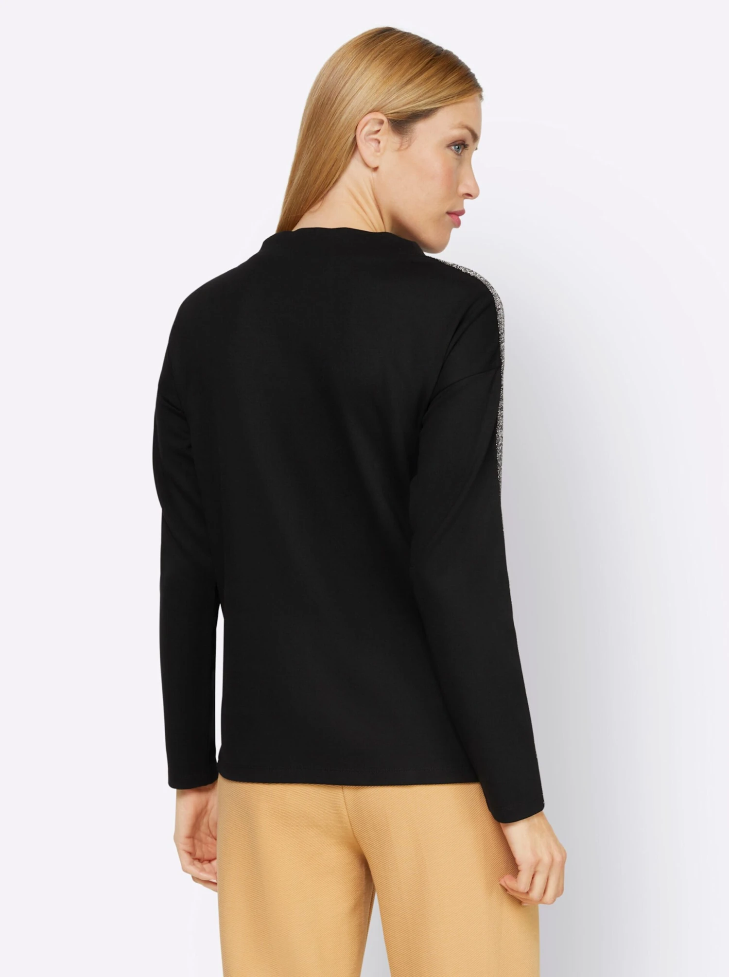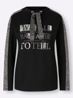 Sweatshirt Up-to-date im Casual-Look, vorne mit silberfarbenem Glanzdruck und Glitzersteinchen. Mit Langarm und sportivem Stehkragen mit Tunnelzug. Effektgarn an Bindebändern, Schulter- und Ärmelnaht. Mit Stretch-Anteil.