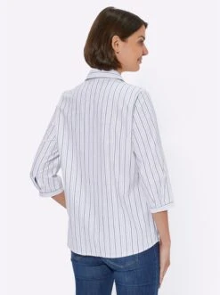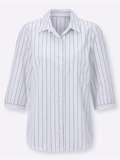 Die weiche Bluse mit Baumwoll-Anteil überzeugt durch das Streifen-Dessin. Mit Hemdkragen, Knopfleiste, einer praktischen, aufgesetzten Brusttasche und 3/4-langen Ärmeln, die mit waagerecht gestreiften Knopfmanschetten enden. Leicht abgerundeter Saum vorne. Brustabnäher sorgen für eine gute Passform.