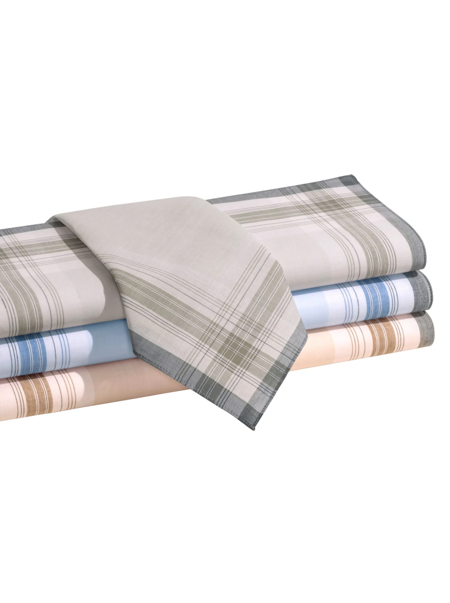 Herren-Taschentücher mit Streifenbordüre. Größe ca. 41×41 cm.