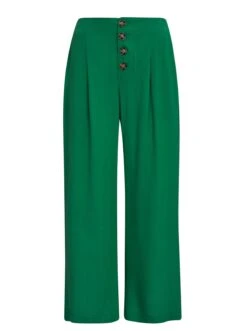 Bei heißen Temperaturen läuft diese 7/8 Hose zur Höchstform auf. Denn durch die Schnittführung mit Bundfalten und weiten Hosenbeinen sowie durch die fließende Viskose kann die Luft um die Beine schön zirkulieren. Der Clou ist der Knopfverschluss mit großen Knöpfen in Holzoptik. Mit 2 Nahttaschen und bequemem Dehnbund hinten. Fußweite ca. 61 cm.