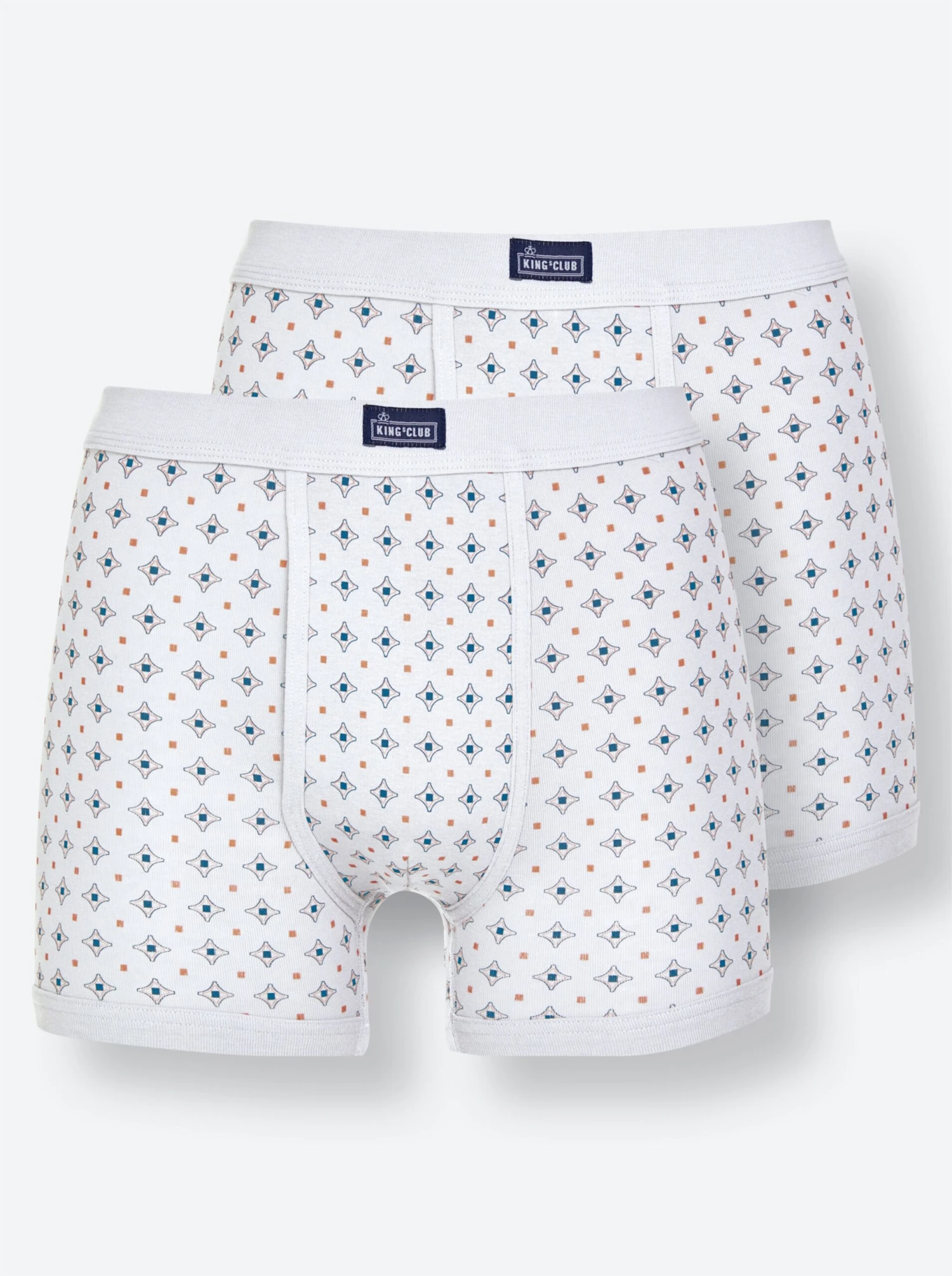 Dezent gemusterte Hose kurz von King`s Club im Doppelpack. Mit doppeltem Weichgummibund und Eingriff. In Feinripp-Qualität.