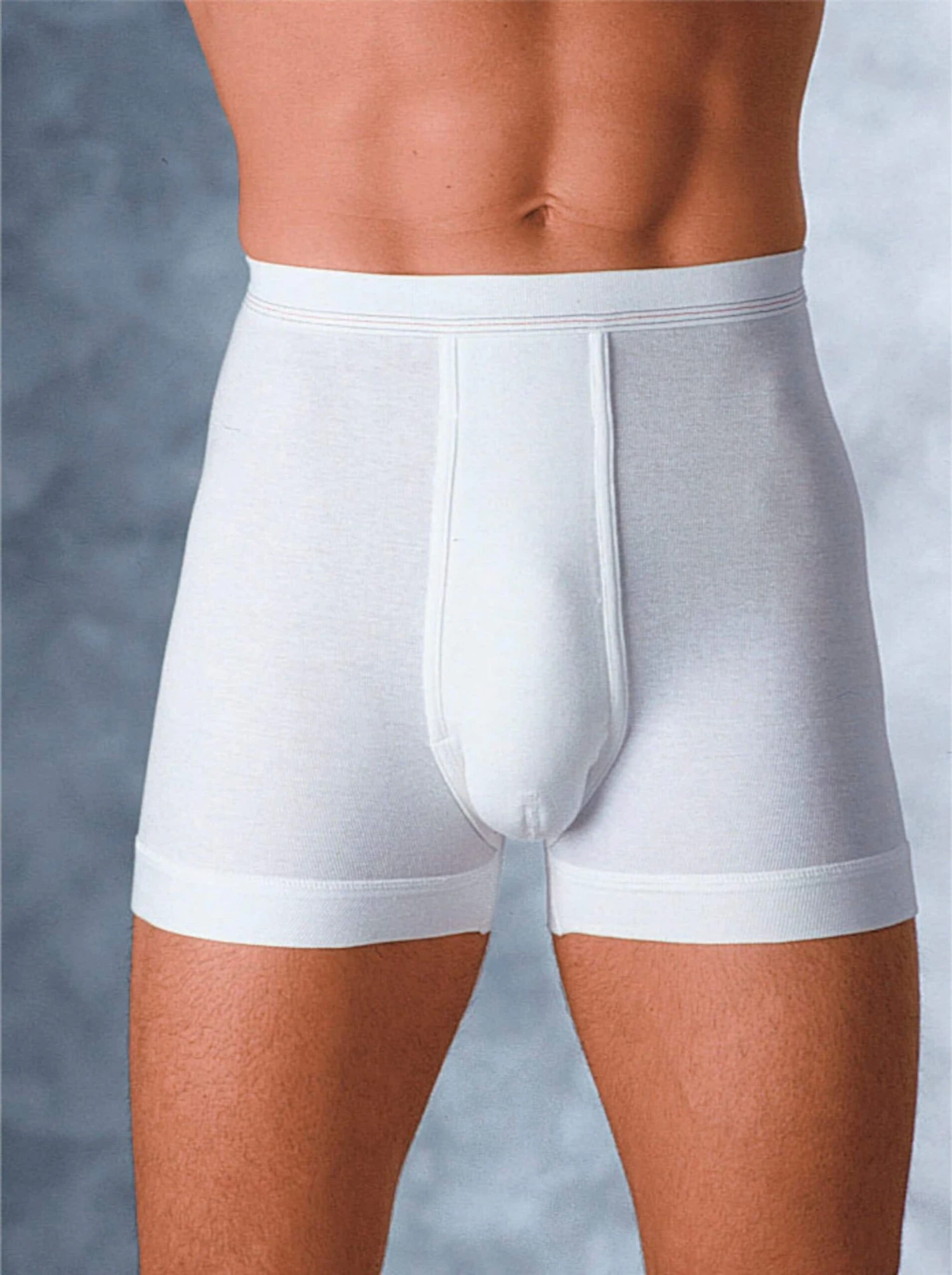 Hose kurz mit Eingriff von con-ta mit Deckverschluss und doppeltem Weichelastikbund. In Feinripp- oder Doppelripp-Qualität. Supergekämmt.