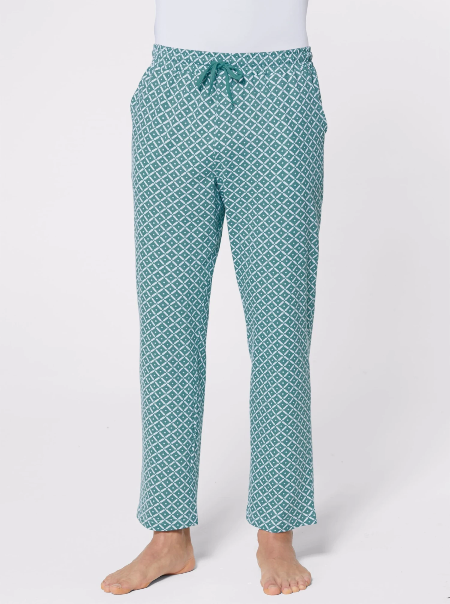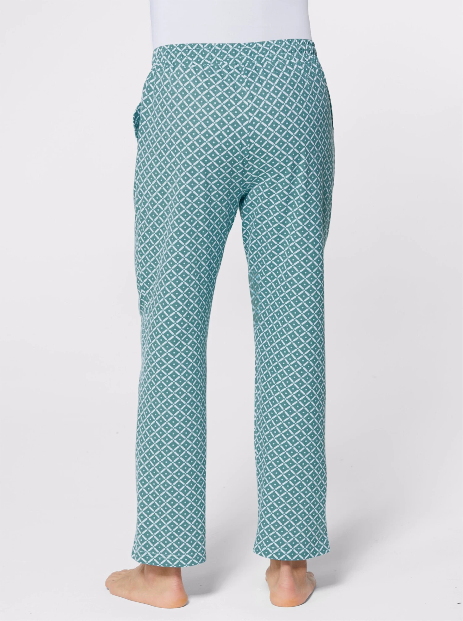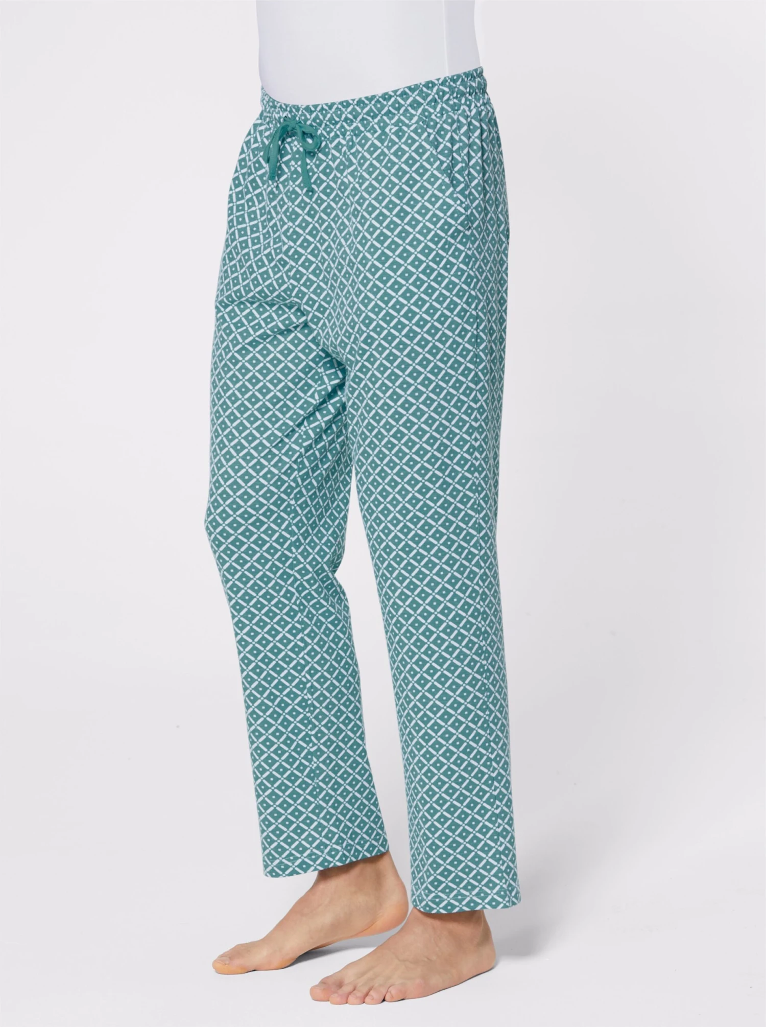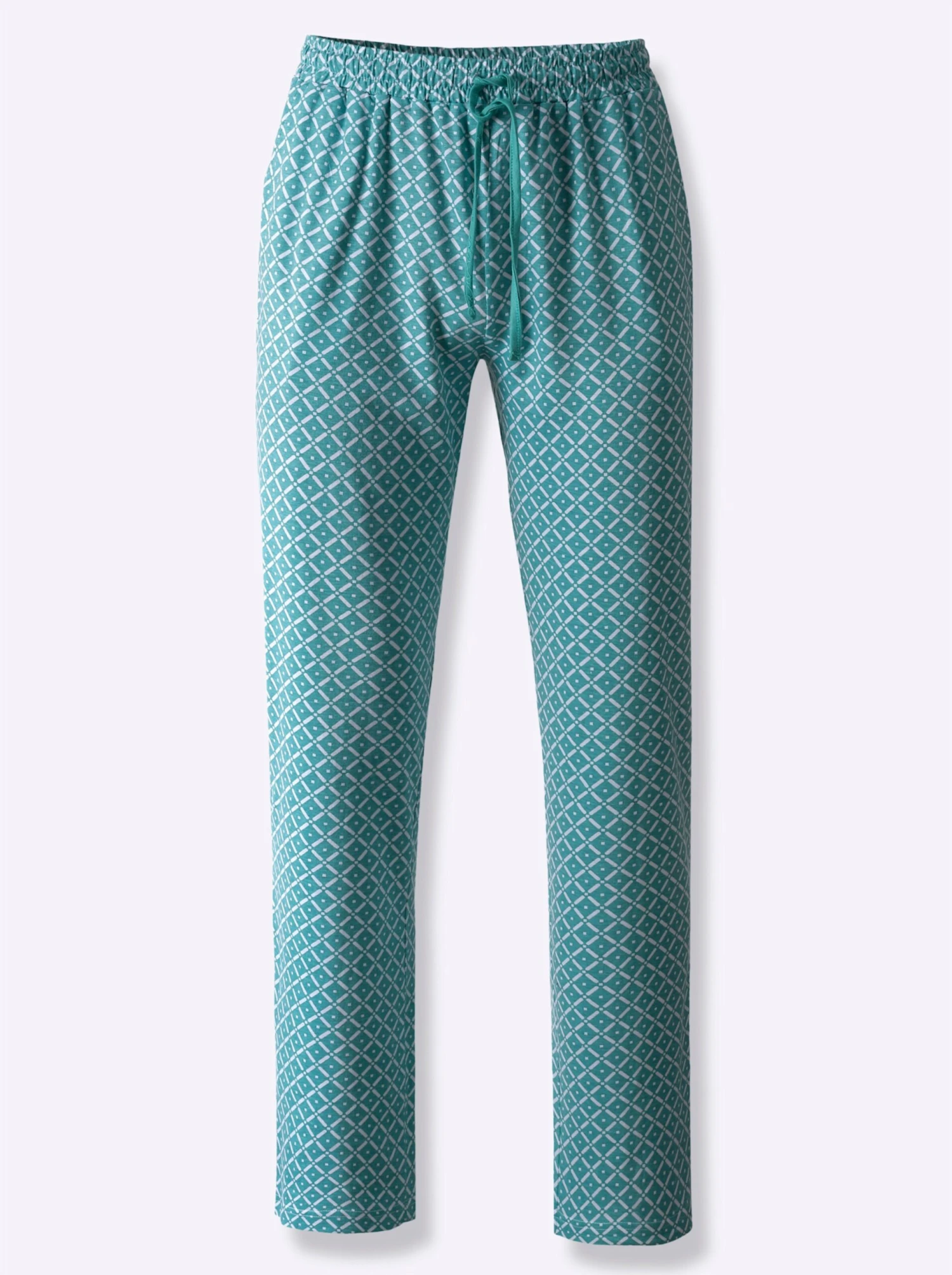 Hose lang im attraktiven Muster mit Dehnbund, Bindeband und 2 seitlichen Taschen. Trageangenehmer Single-Jersey.