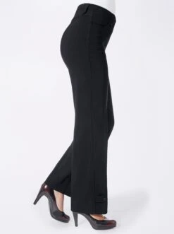 Hose – die Stretch-Qualität sorgt für pures Wohlgefühl, die angesagte weite Form modelliert eine Traum-Silhouette. Mit Gürtelschlaufen, Knopf- und verdecktem Reißverschluss vorne, dekorativen Zierriegeln an Bund und Beinabschluss sowie aufgesetzten Taschen im Vorderteil. Fußweite ca. 46 cm.