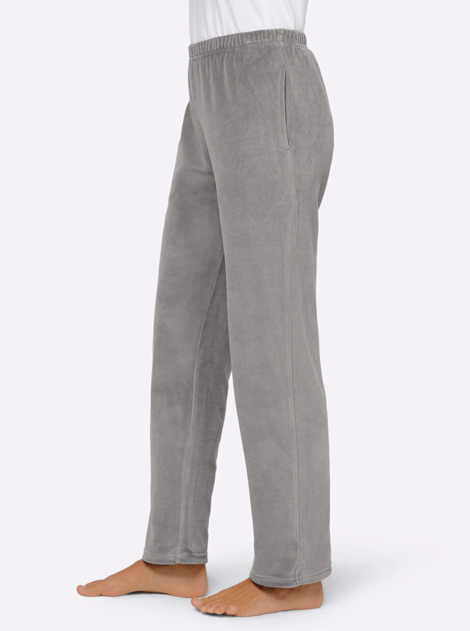 Hose in samtweicher Nicki-Qualität. Mit Dehnbund. 2 Taschen. Schlitze am Bein.