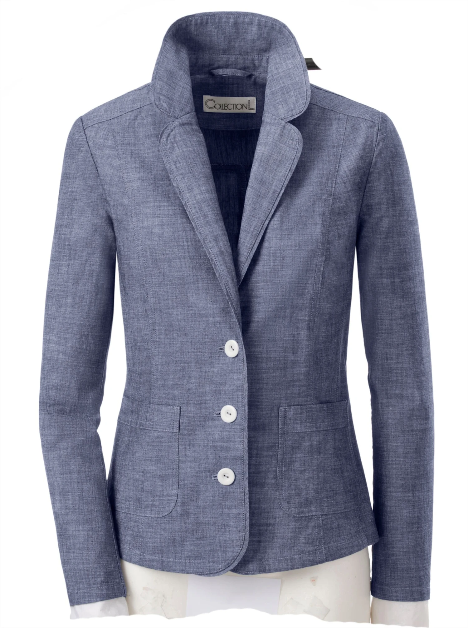 Darin machen Sie immer eine gute Figur! Blazer mit Reverskragen, farblich abgestimmten Knöpfen und 2 aufgesetzten Taschen. Die Schulterpolster verleihen eine schöne Silhouette. Lange Ärmel mit Knopfverzierung.
