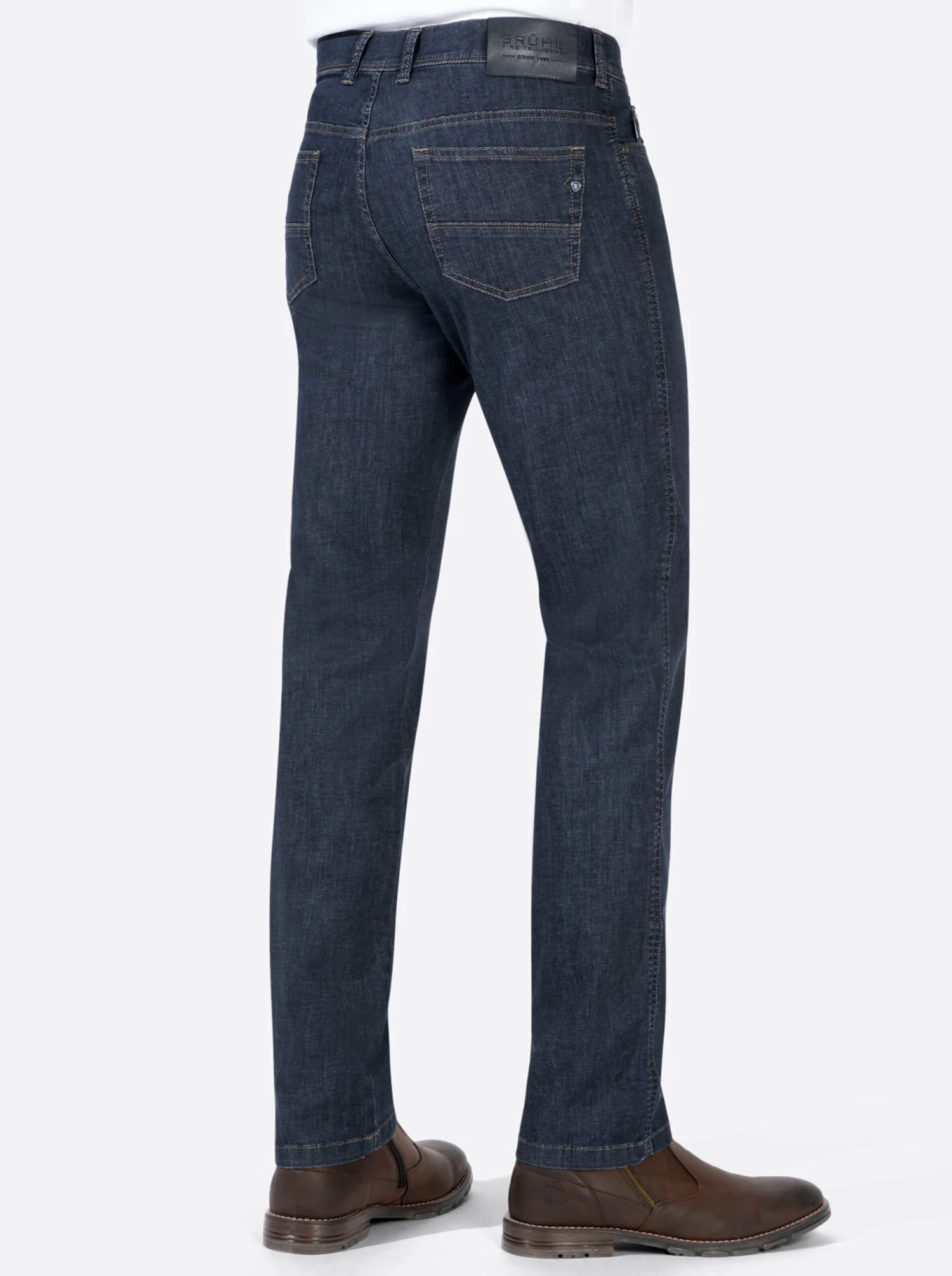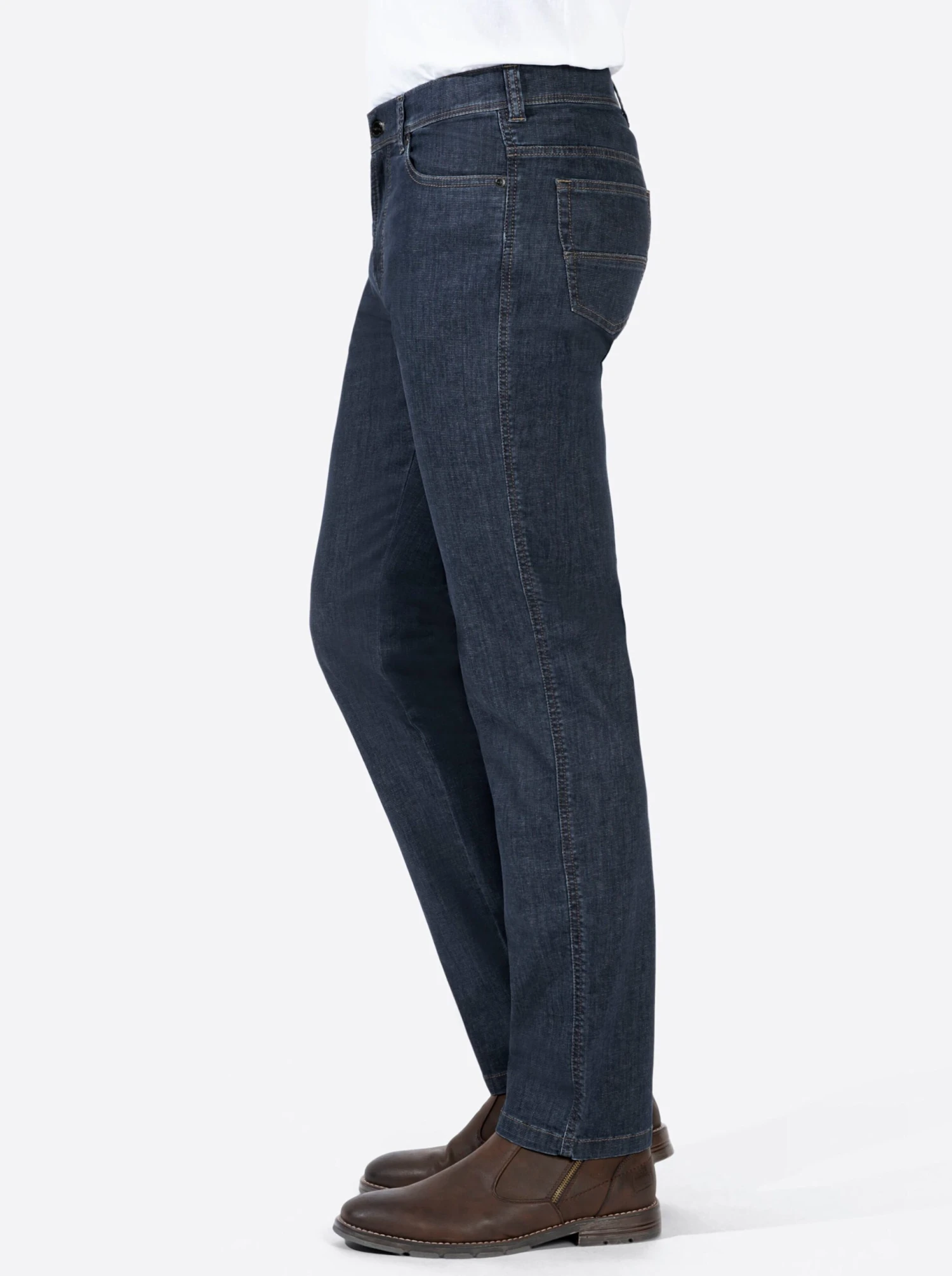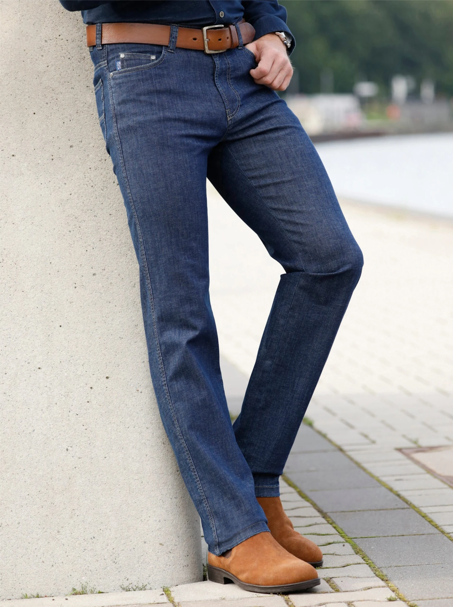 Hinein ins Vergnügen! Die Jeans von Brühl ist perfekt für den Sommer, weil sie etwas leichter und luftiger ist als die gängigen Denim-Modelle. Auch optisch unterscheidet sie sich von anderen: Die feine Struktur, die man auch auf der Innenseite gut erkennen kann, sorgt für einen edlen zweifarbigen Effekt. 5-Pocket-Form. Mit guten Rücksprungwerten – das bedeutet: Sie macht jede Bewegung mit und behält dabei ihre Form. Ohne Gürtel.