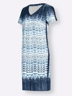 Jerseykleid – Dunkelblau-aquamarin-bedruckt